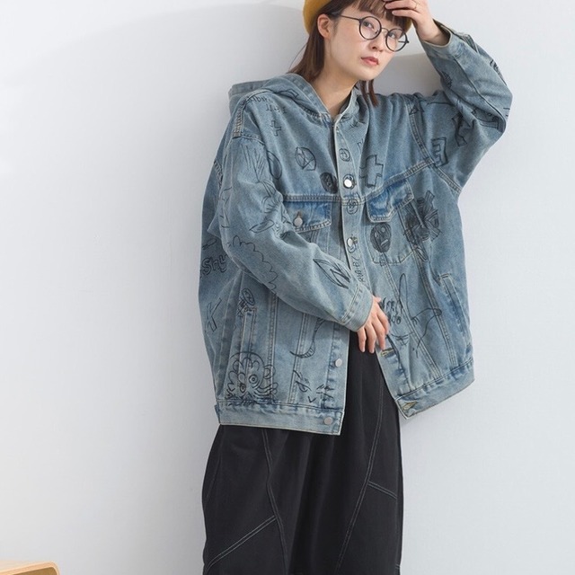 【M〜L対応】アートペイントデニムフードジャケット