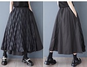 異素材を切り替え、立体的な表情を持たせたフレアスカート。