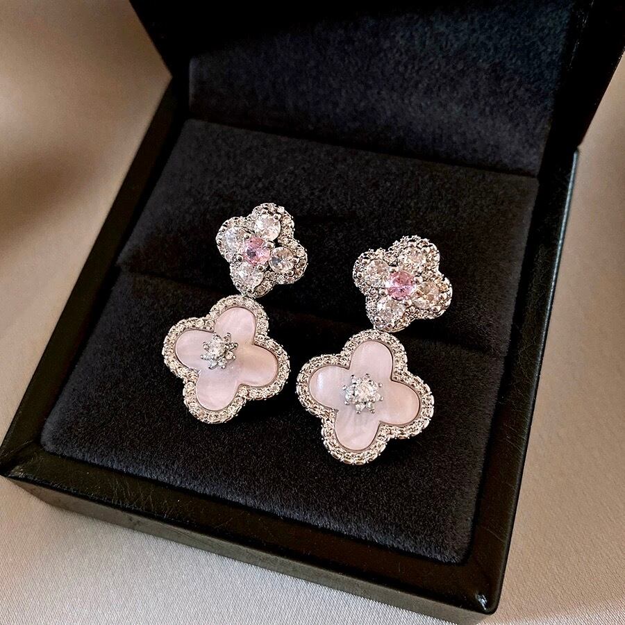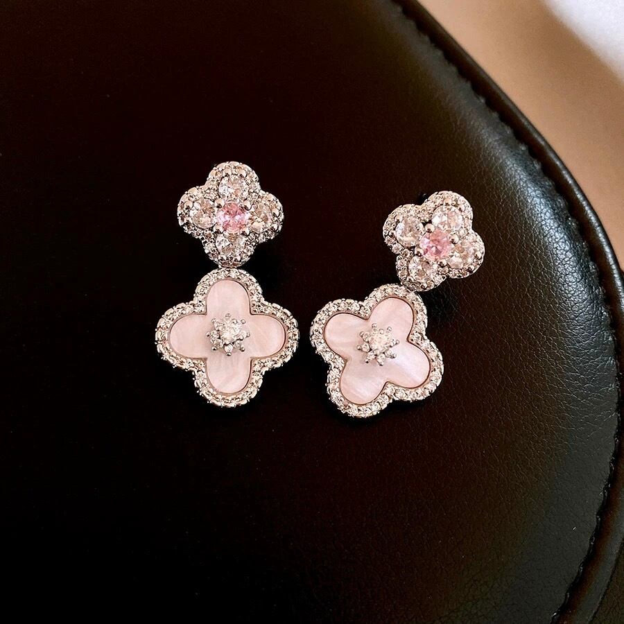 ・耳元で優しく揺れる4つ葉フォルムが、顔まわりに透明感と可憐さをプラス