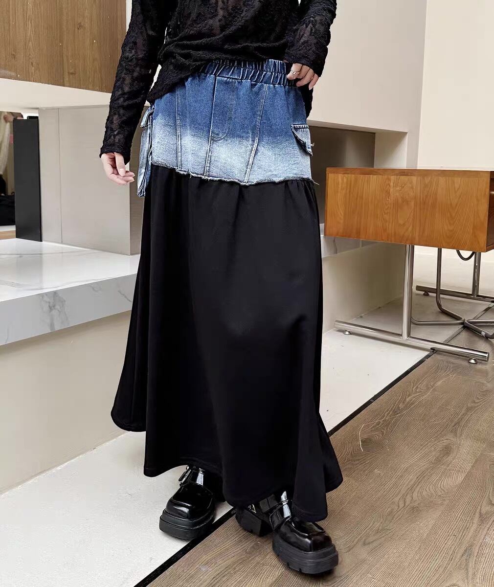 ・ヴィンテージ加工を施したデニムと、落ち感のあるブラック生地をドッキング