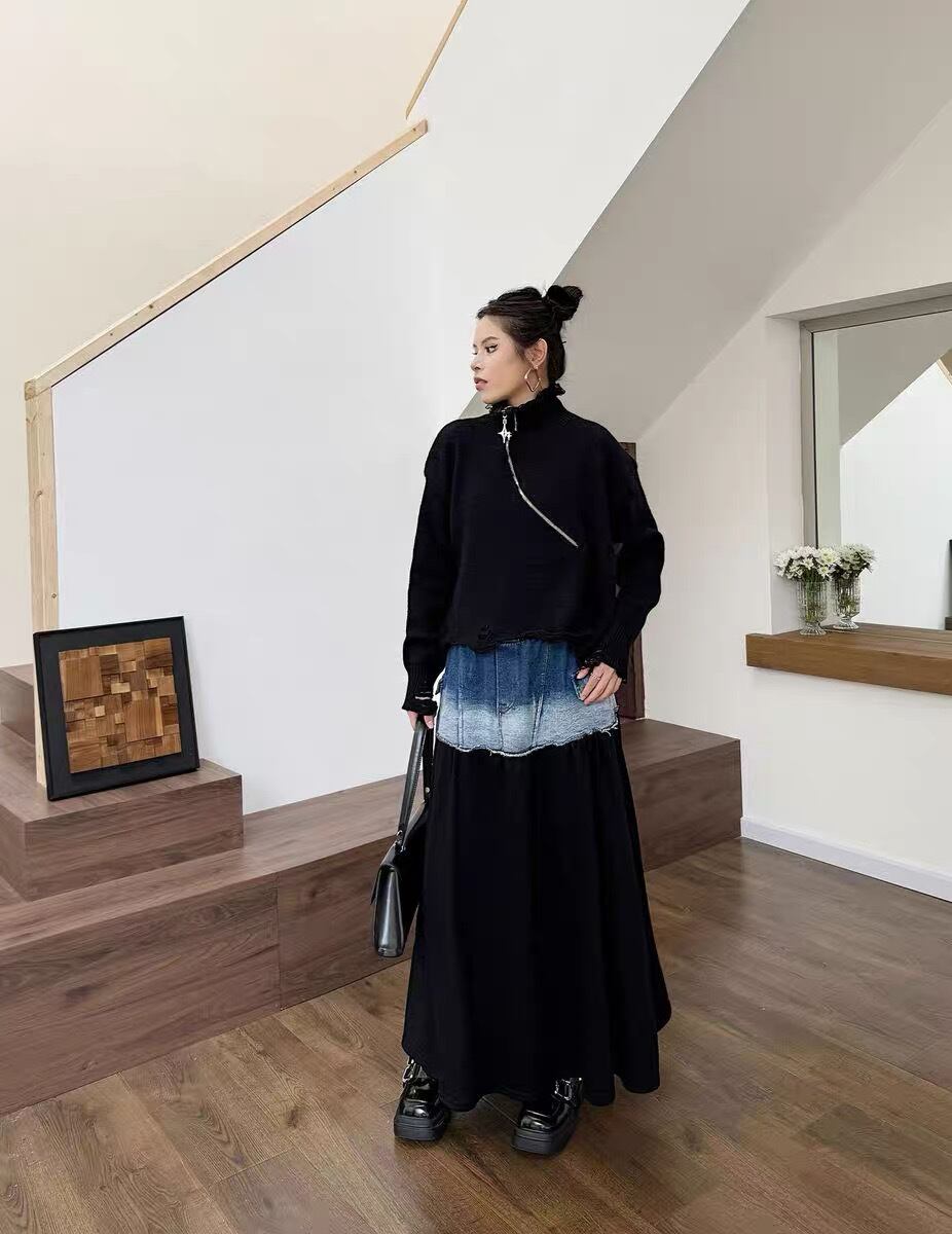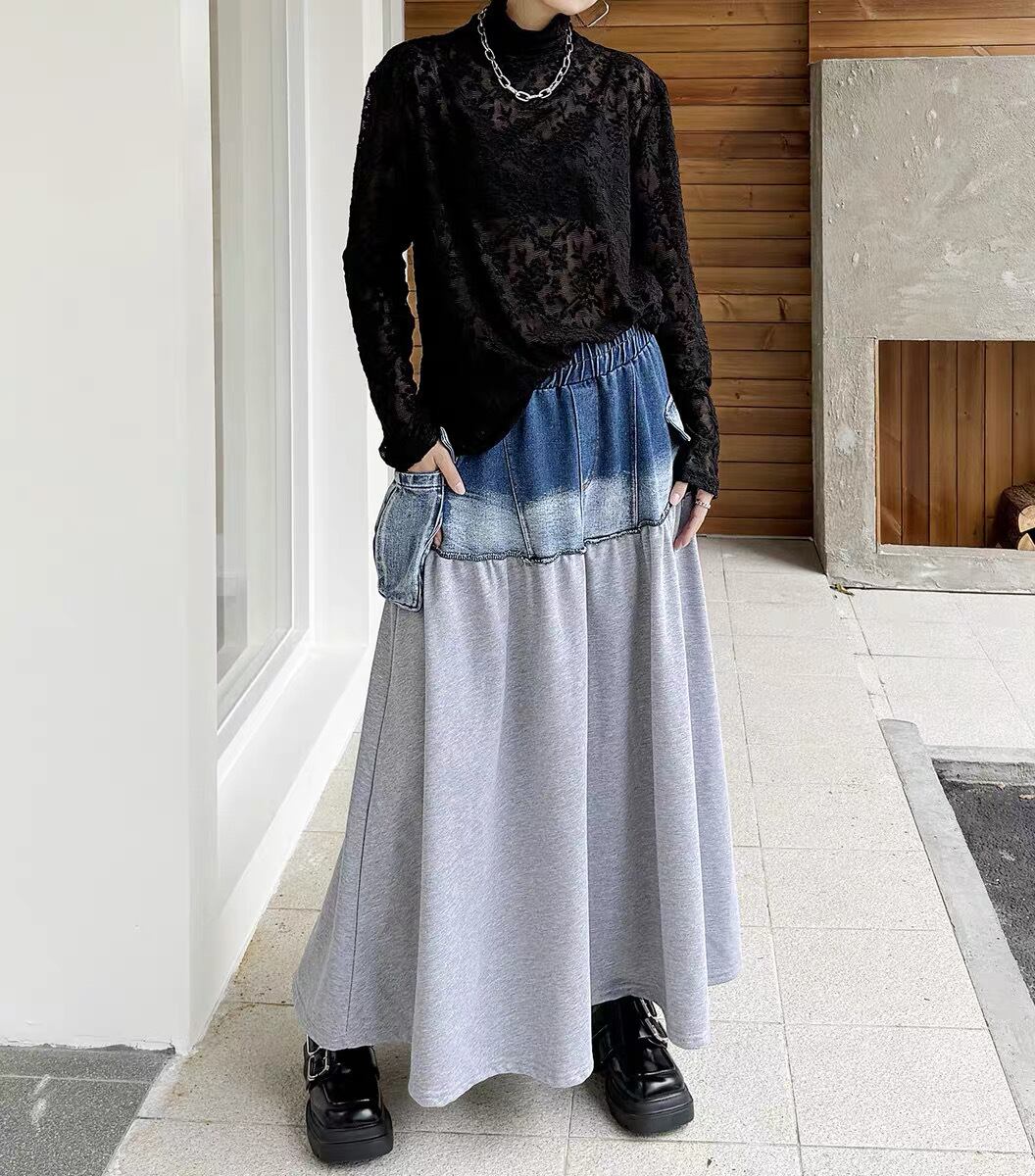 ・マキシ丈で体型カバーしつつ、モードに映える1枚