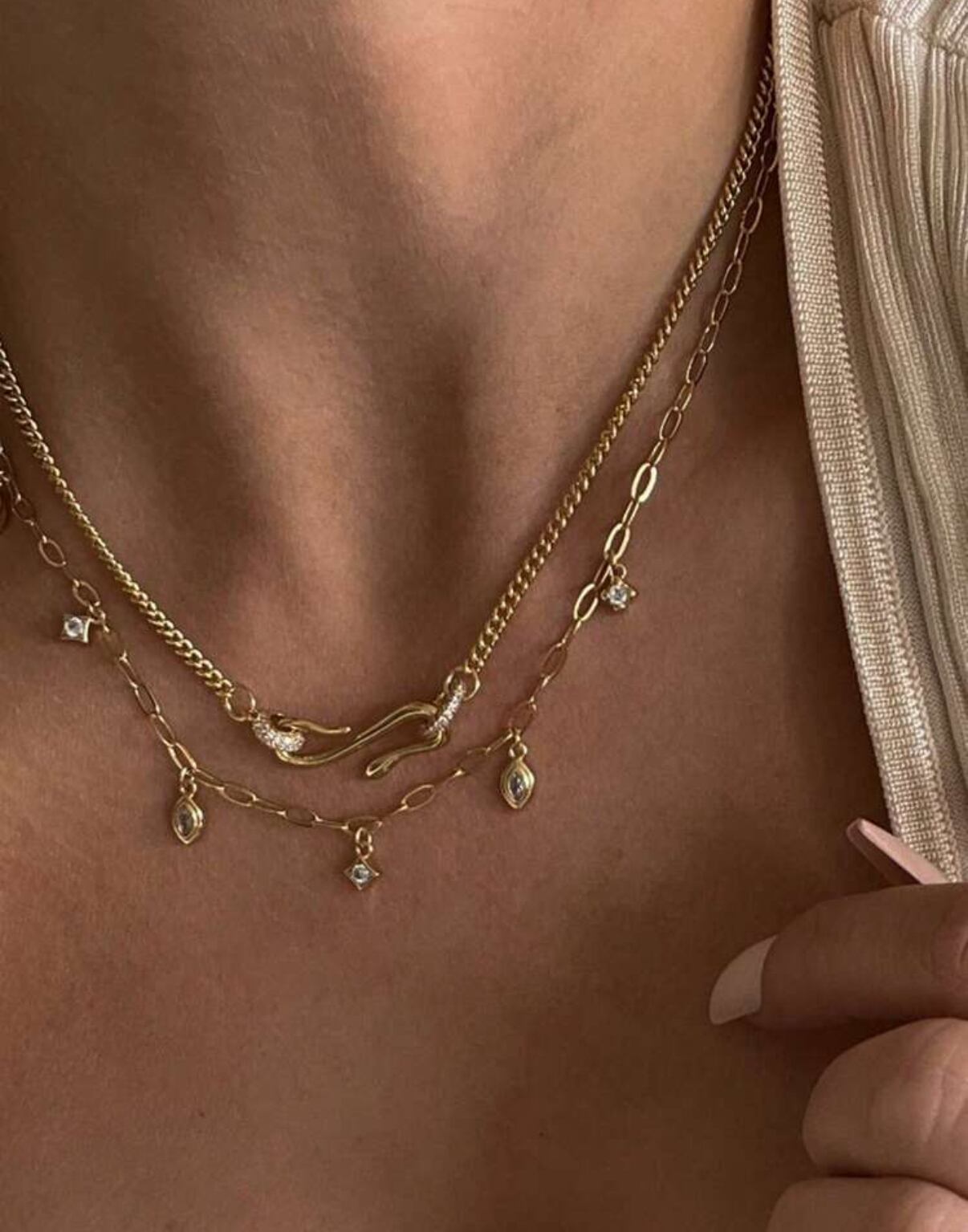 ・細身のチェーンと小ぶりなトップで、華奢ながらも確かな存在感