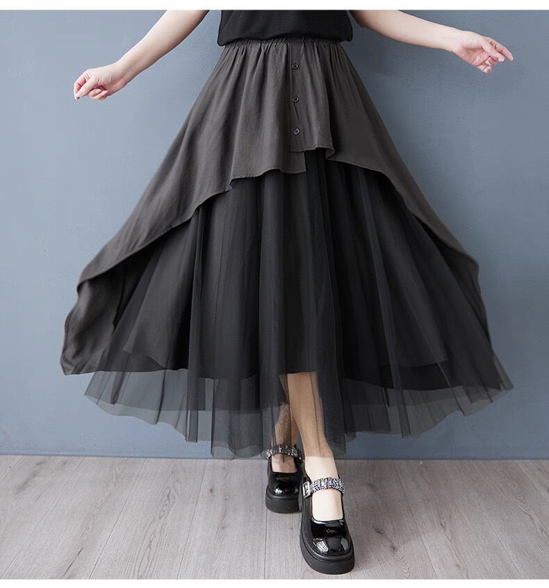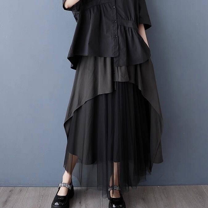 ブラックスカート/アシンメトリースカート/チュールレイヤードスカート