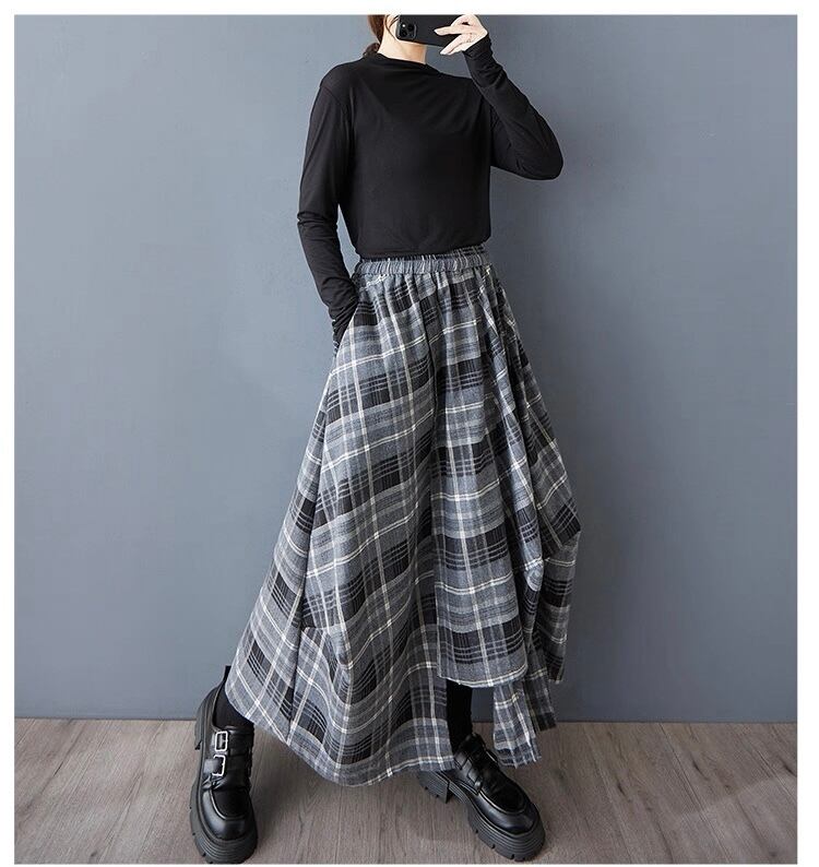 #チェック柄スカート #アシンメトリースカート #体型カバーコーデ #ウエストゴムスカート #大人カジュアル #ナチュラルコーデ #グレースカート