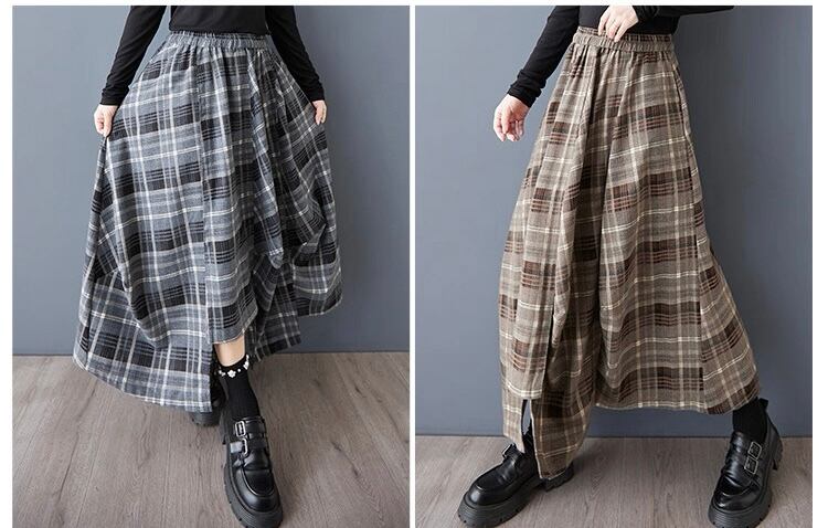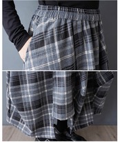 体のラインを拾いにくい、ゆったりとしたシルエットが魅力のチェック柄スカート。