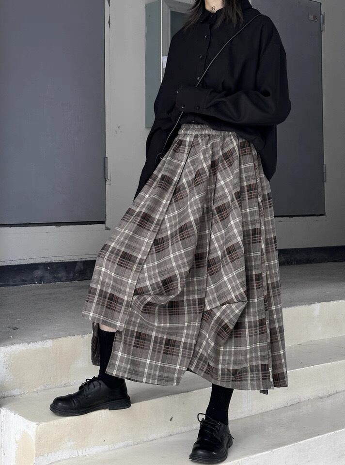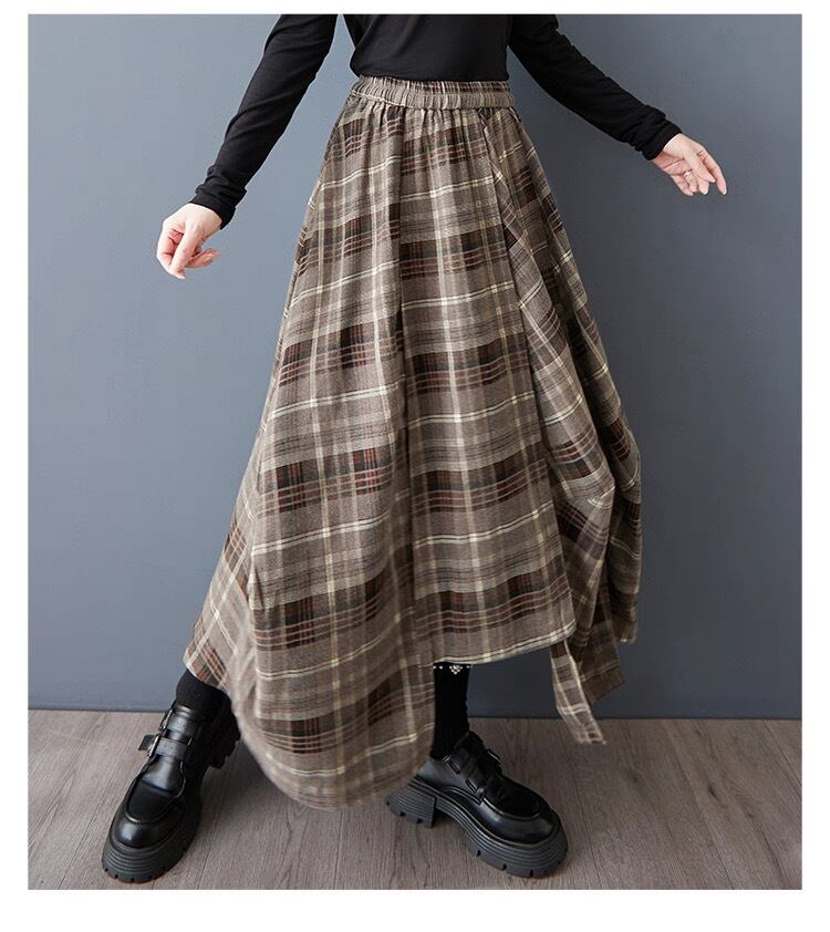 #秋冬スカート #チェック柄コーデ #アシンメトリースカート #ブラウンスカート #ナチュラルファッション #大人かわいい #ゆったりスカート