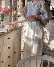 リラックス感のあるゆったりシルエットながら、女性らしい華やかさを演出します。