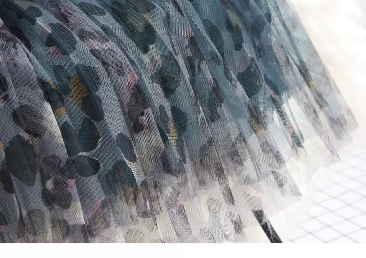 ・裾の柄はシフォンチュールにプリントされたレオパード柄