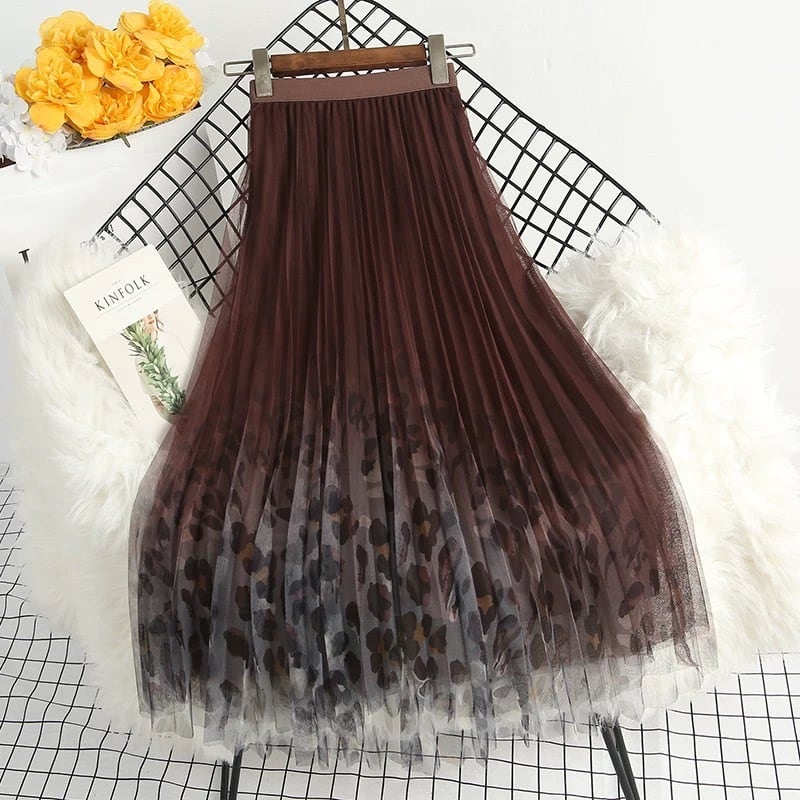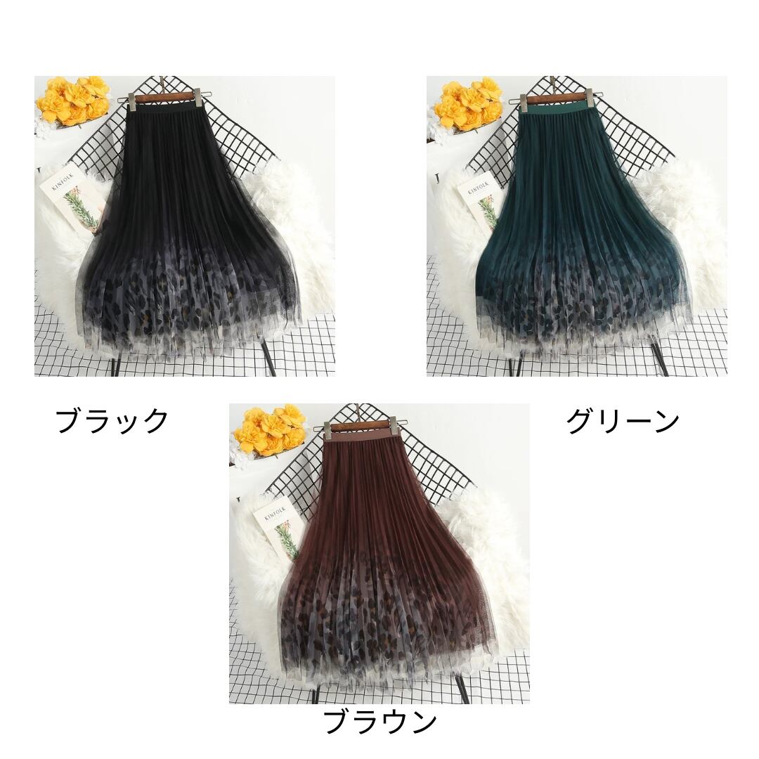 裾に向かって浮かび上がる繊細なレオパード柄と、2枚仕立てのチュール素材が、