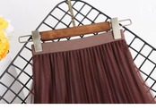 秋の定番カラー・ブラウンを基調にした、品のあるプリーツスカート。