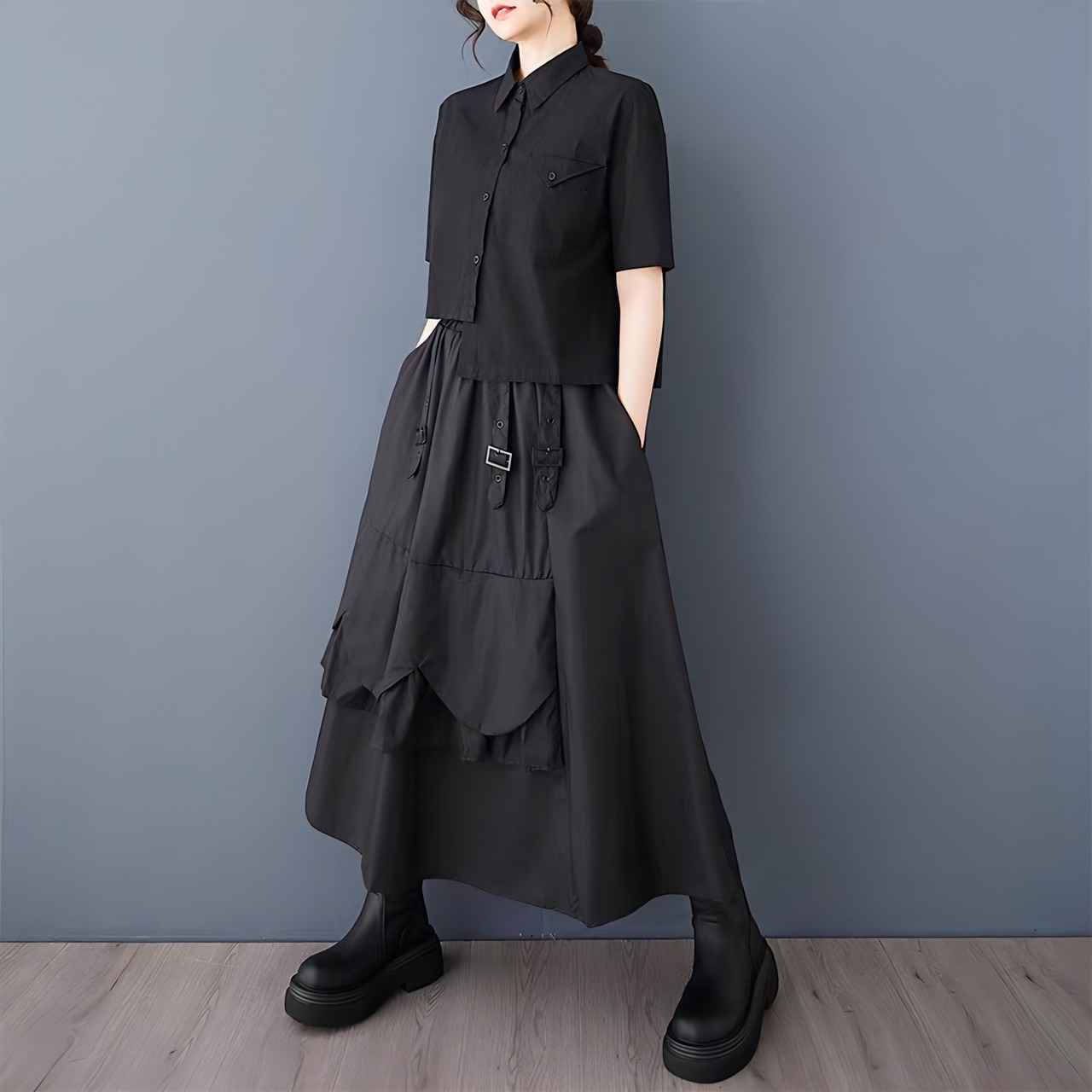 アシンメトリーに重ねられたスカラップヘムが印象的なAラインスカート。