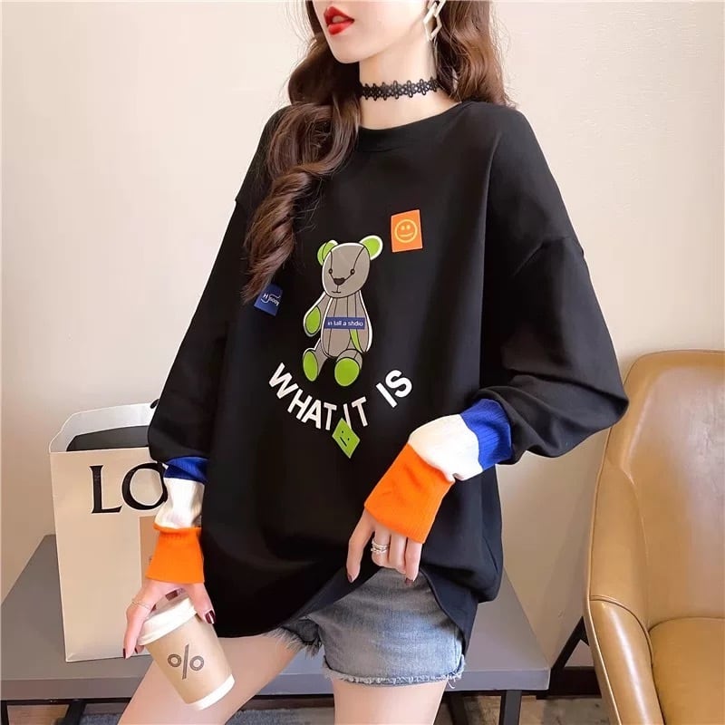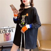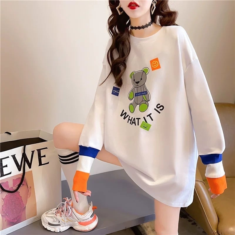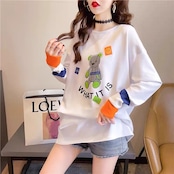 ほどよいビッグシルエットで仕上げた、くまプリントのロング丈カットソー。