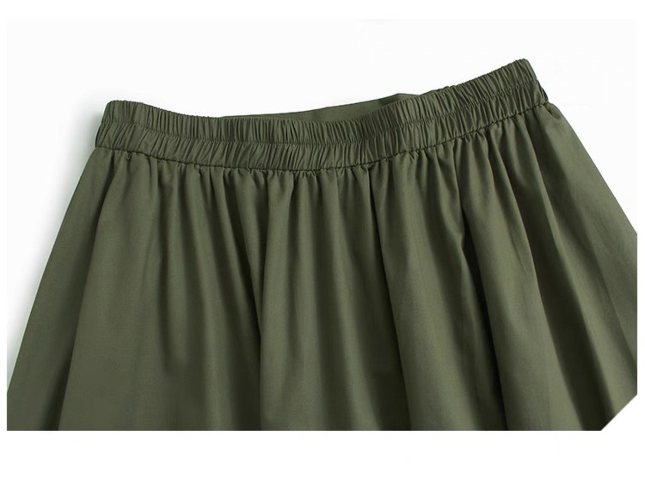 ウエストはゴム仕様でラクなのに、広がりすぎない絶妙な丸みがシルエットを美しく見せてくれる一着です。