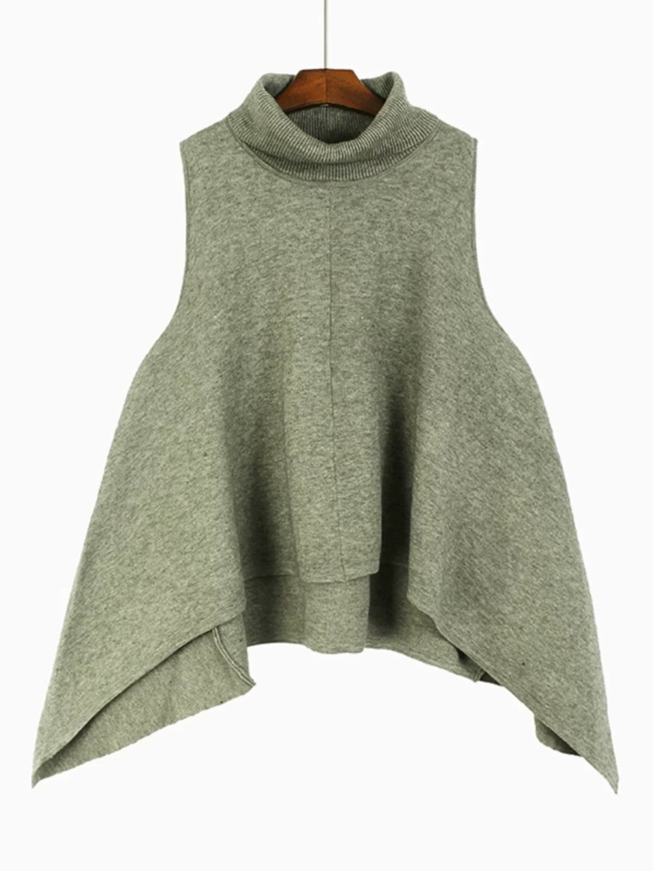 ふんわり広がる立体シルエットが魅力のハイネックニットベスト。