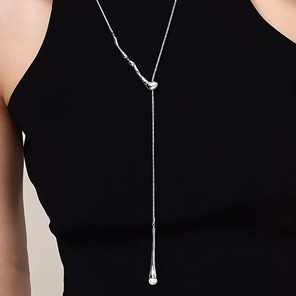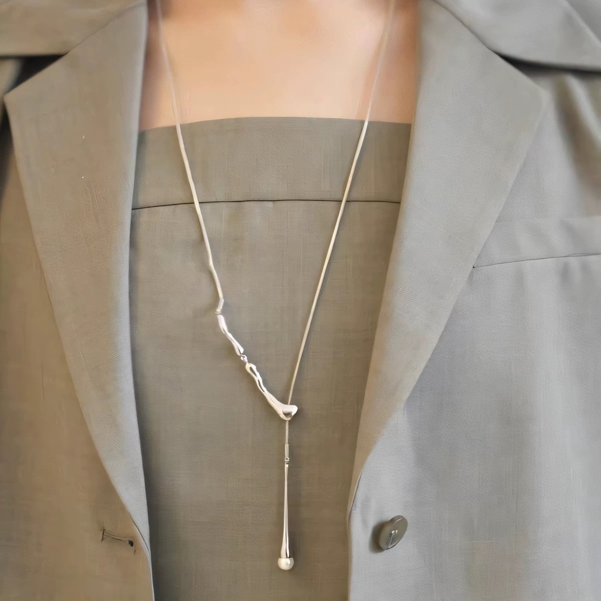 まるで水滴がこぼれ落ちたような“ウォータードロップ”モチーフをあしらったロングネックレス。
