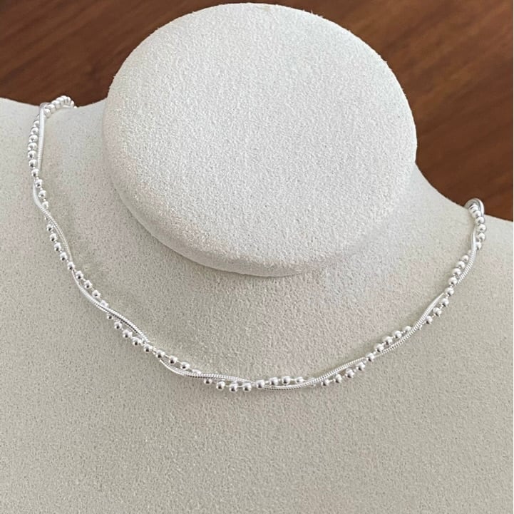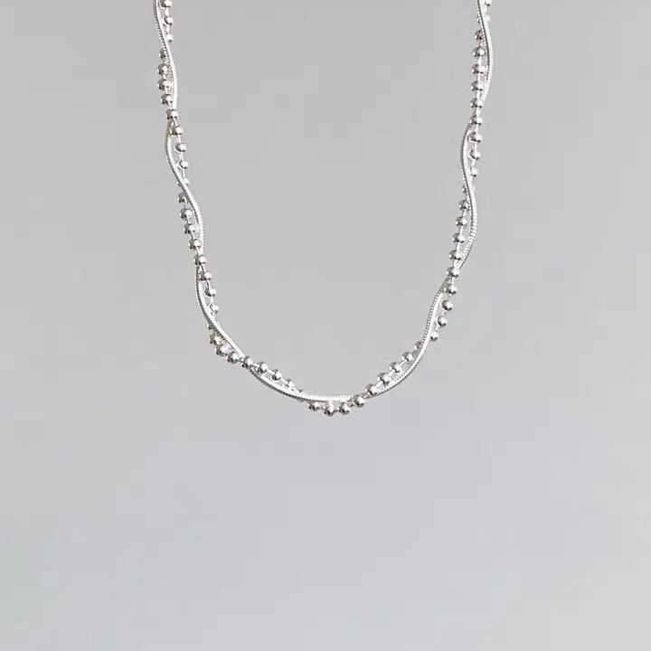 なめらかなシルバーラインに、繊細なボールチェーンを重ねた