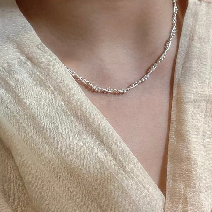 ひとひねりある「うねり」と「粒感」が首元に自然なアクセントを加え、