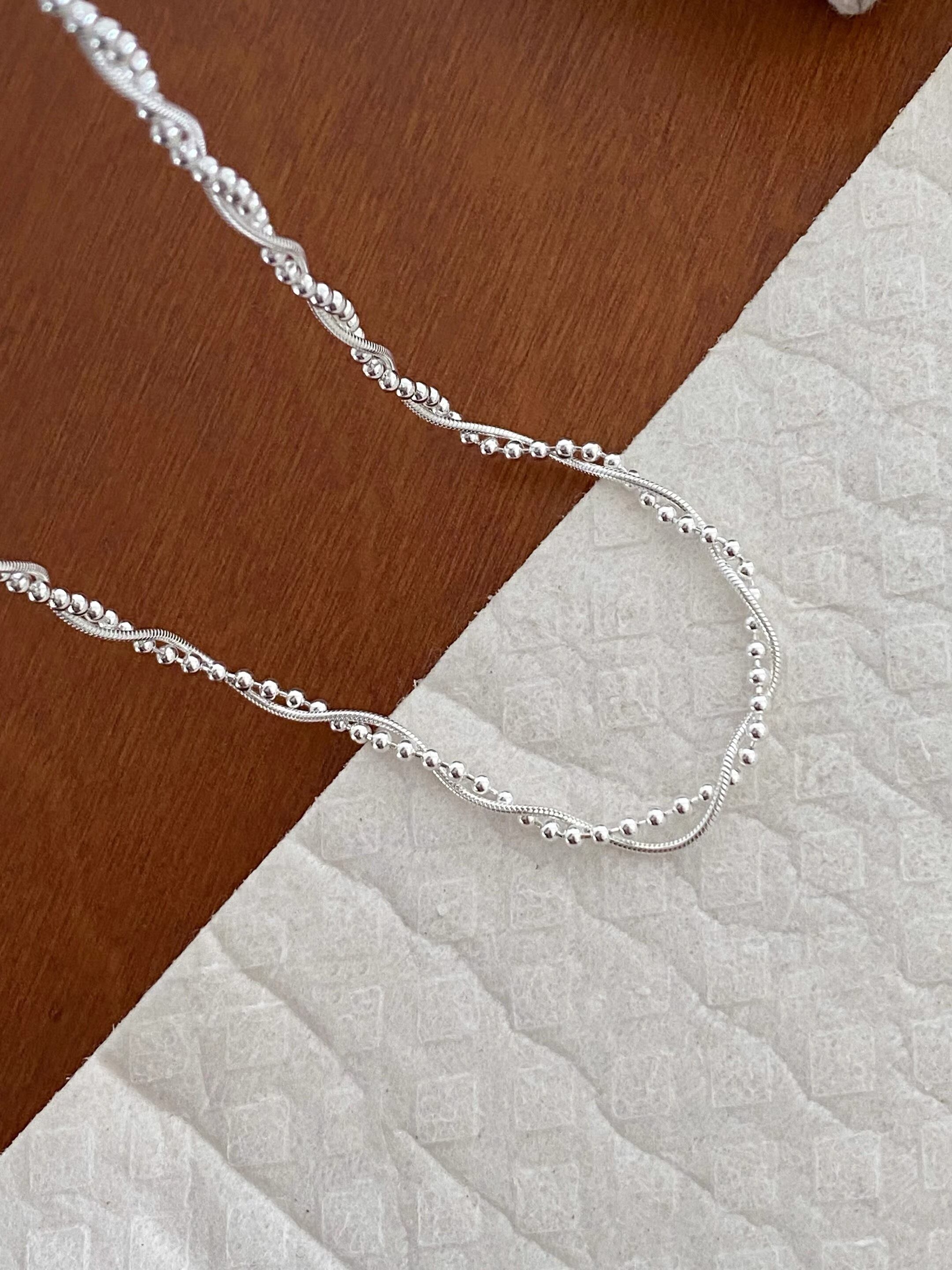 【シルバーコーティング】ダブルライン×ボールチェーンネックレス