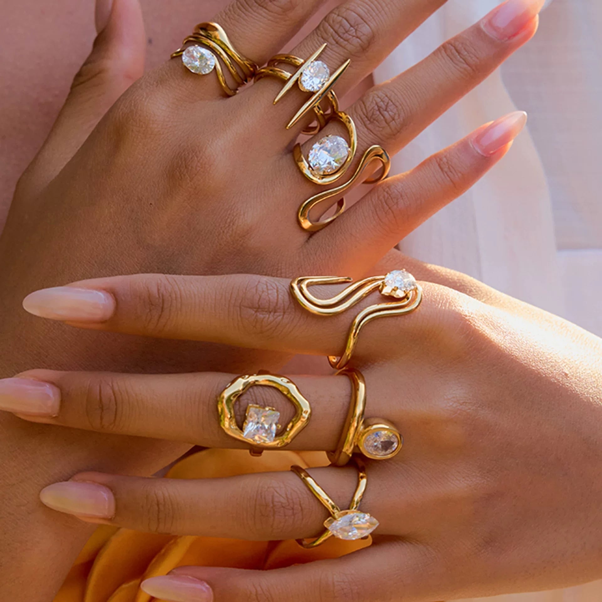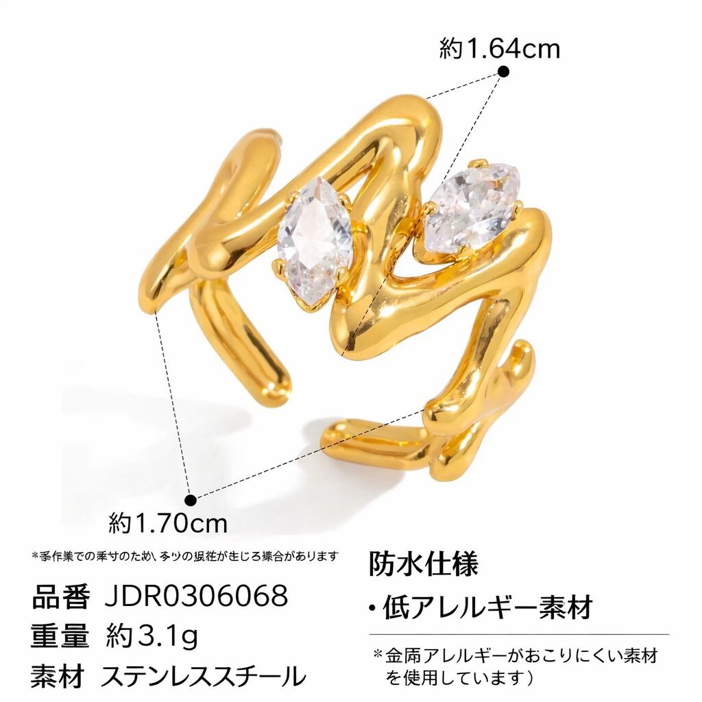 有機的にうねるラインが印象的な、ダブルストーンデザインのリング。