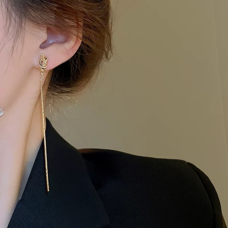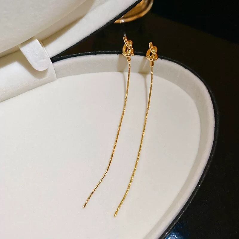 【結びモチーフ×ロングチェーン】ゴールドスリムラインピアス