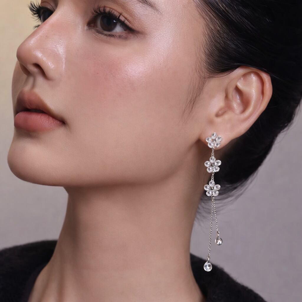 可憐な花が連なり、耳元に静かな輝きを宿す一対。