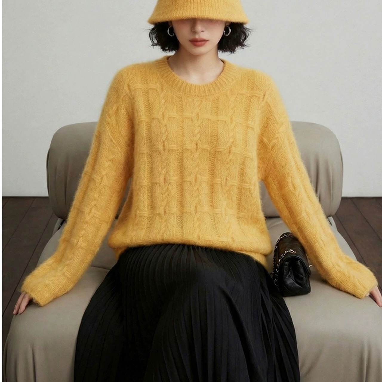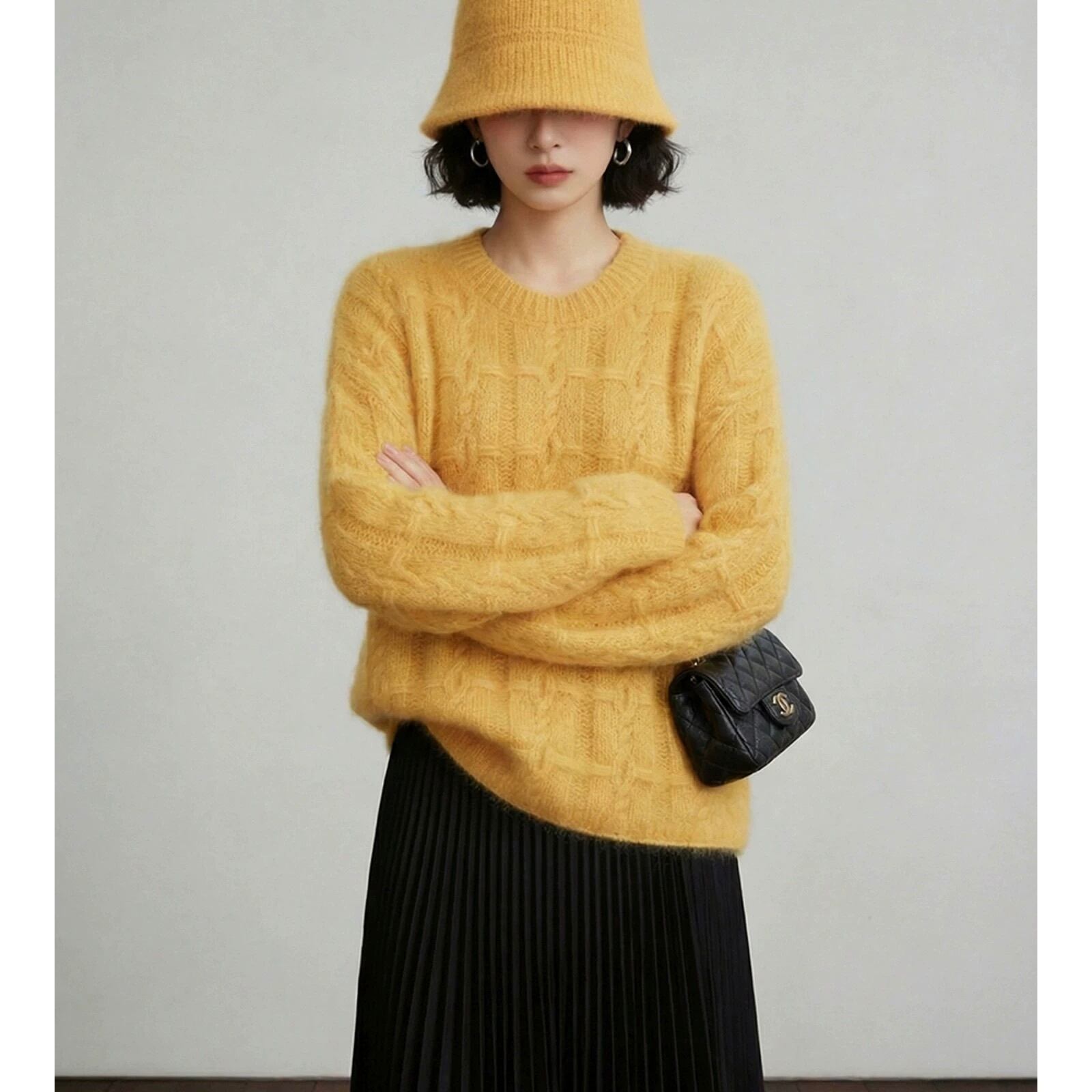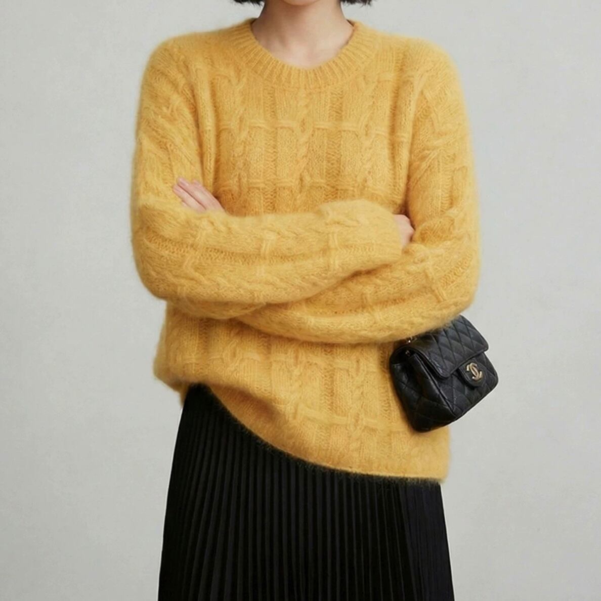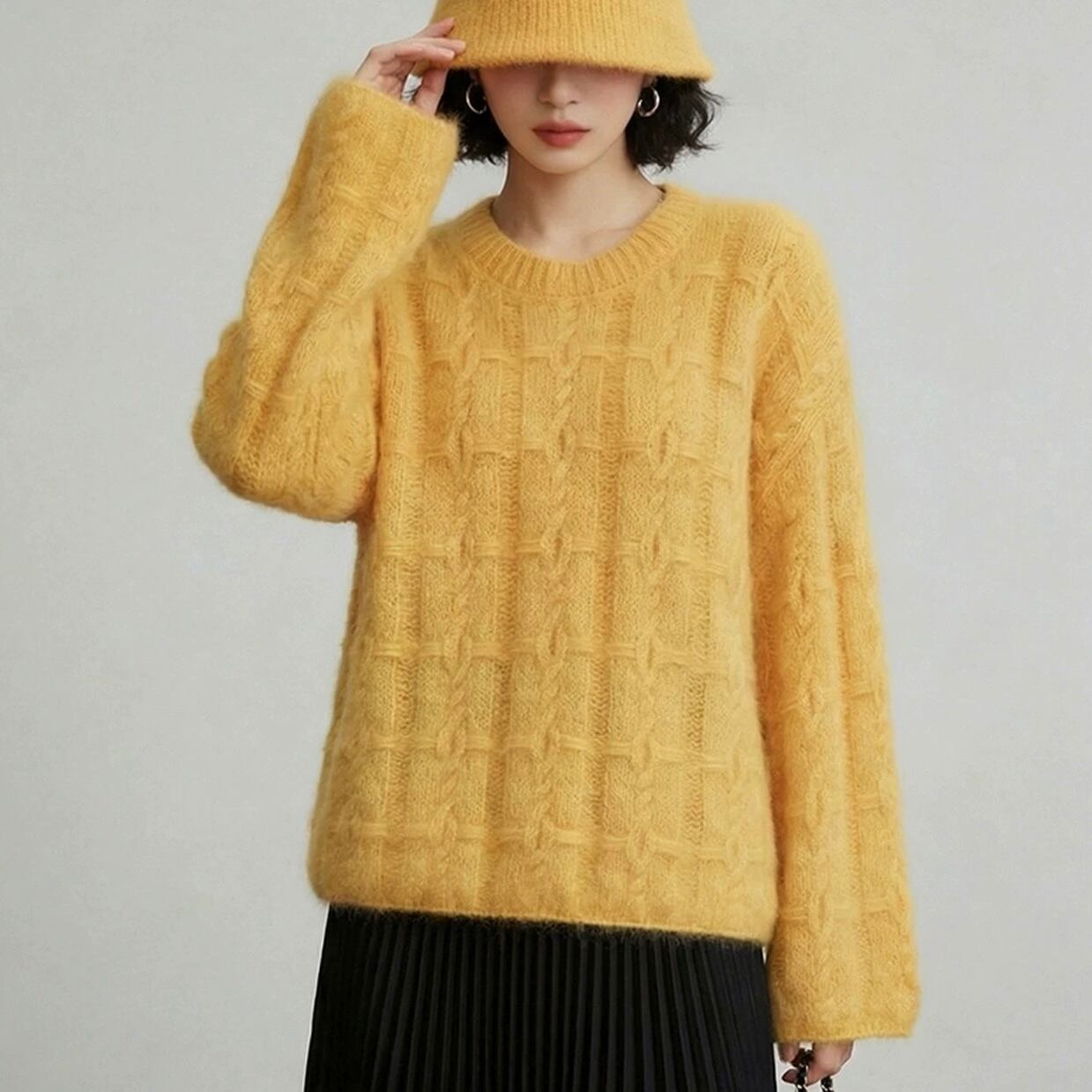 編み柄は立体感のあるケーブル編み。