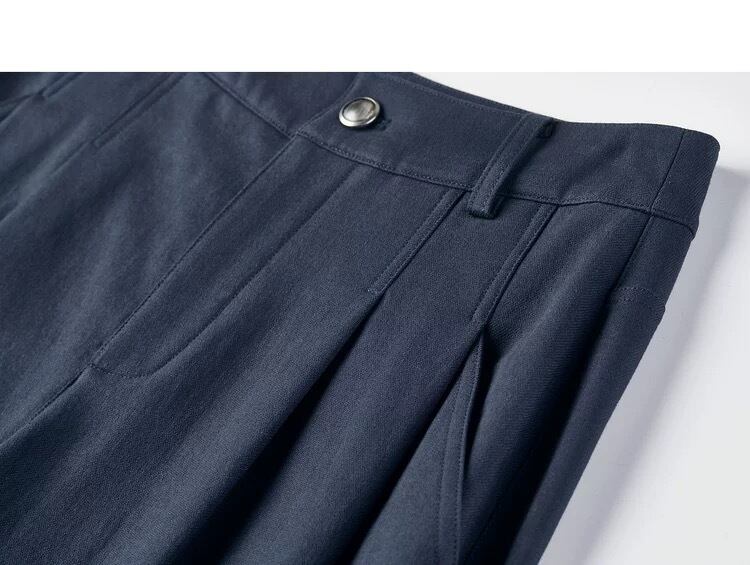 一見シンプルながら、フロントに入ったタックと程よいワイドシルエットが