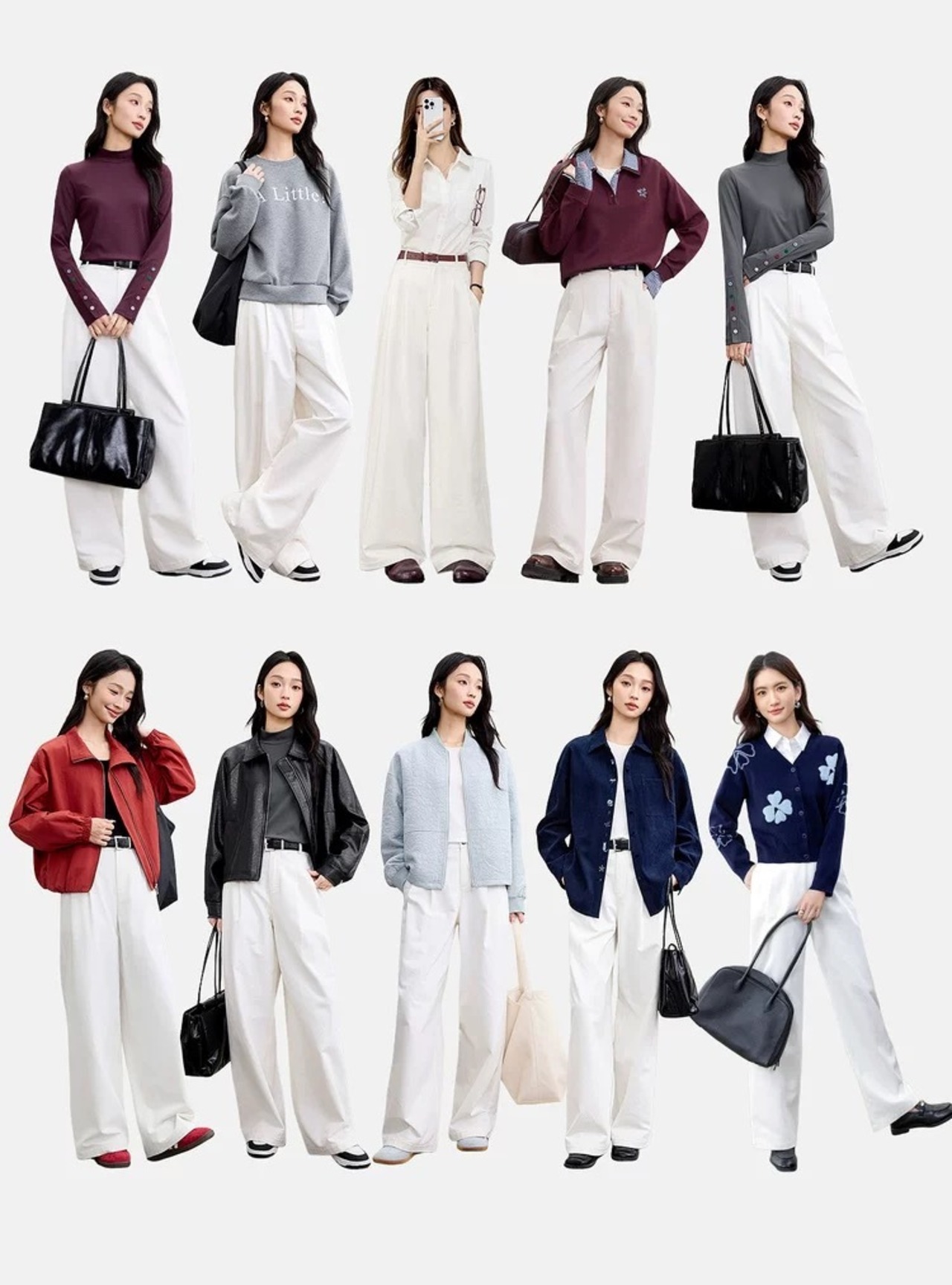 脚のラインを拾わず、自然に体型を整えてくれるワイドパンツです。