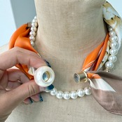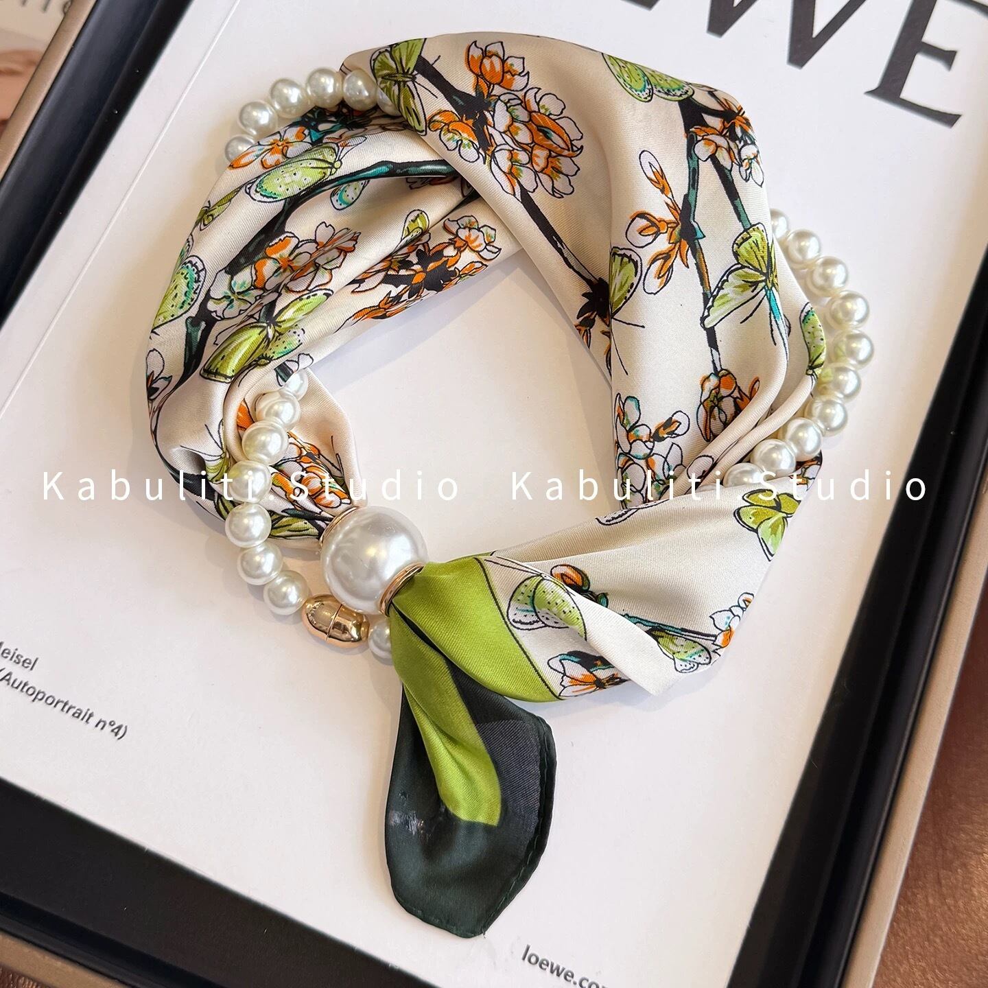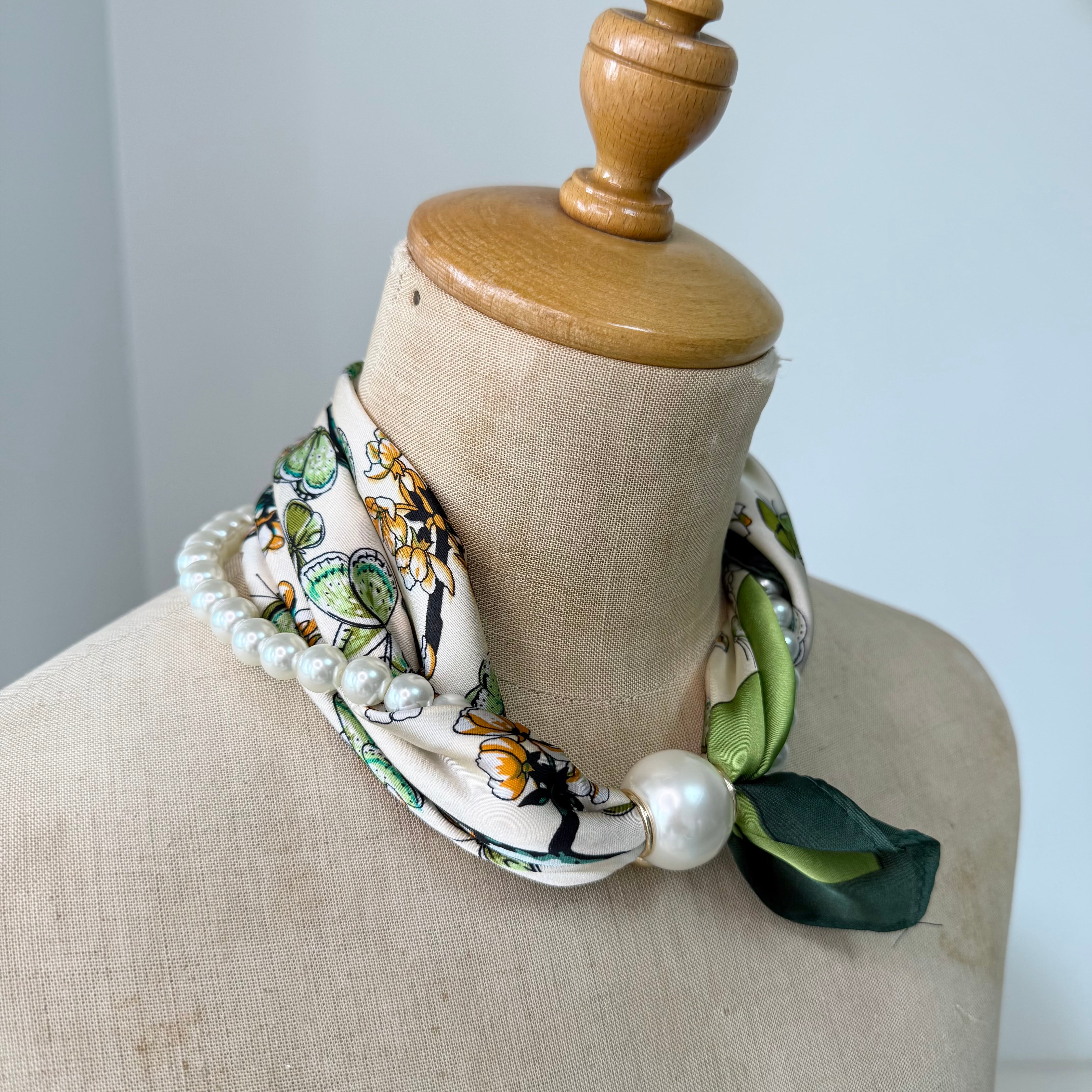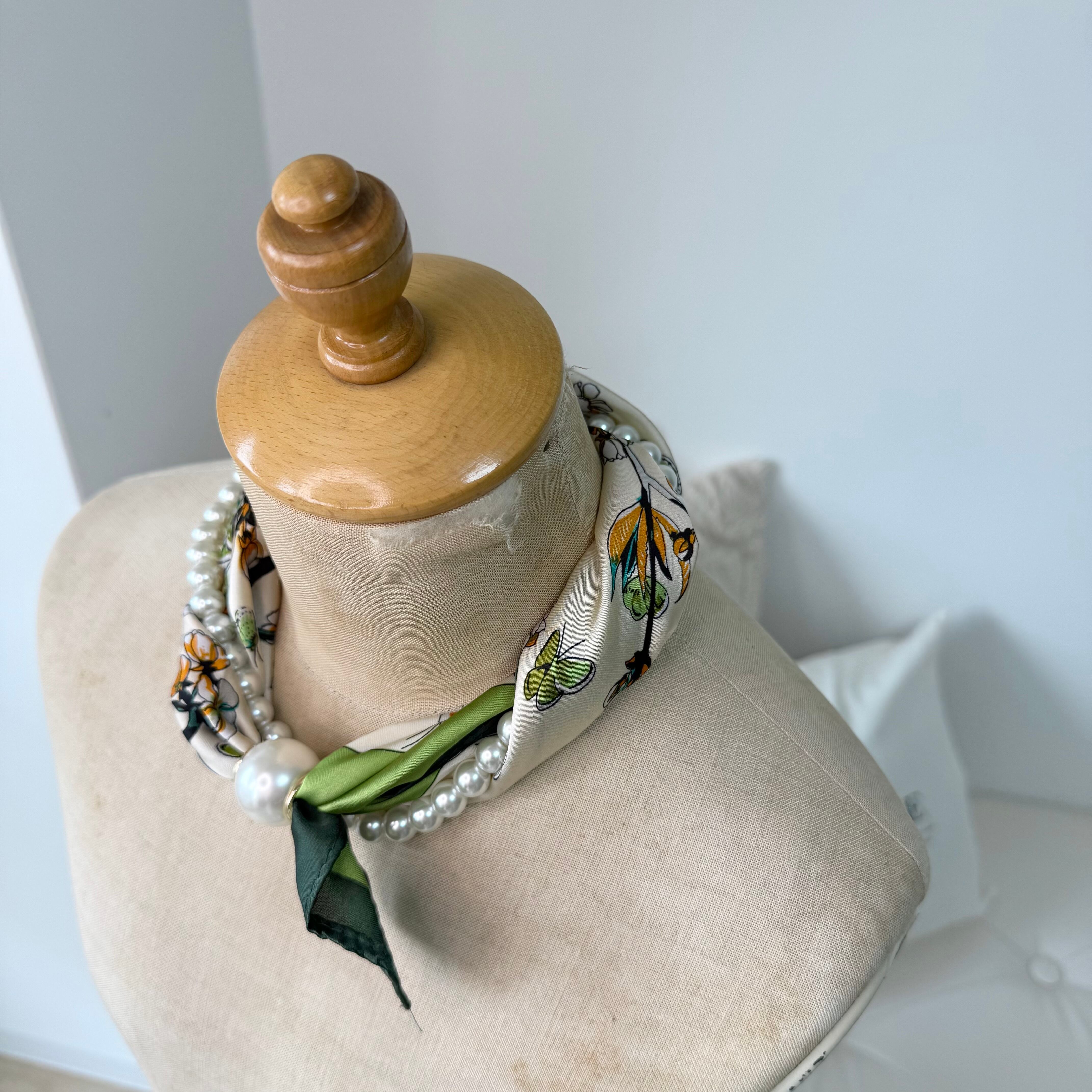 【着用動画あり】ホワイトグリーン|スカーフ×パール 2点セットネックレス