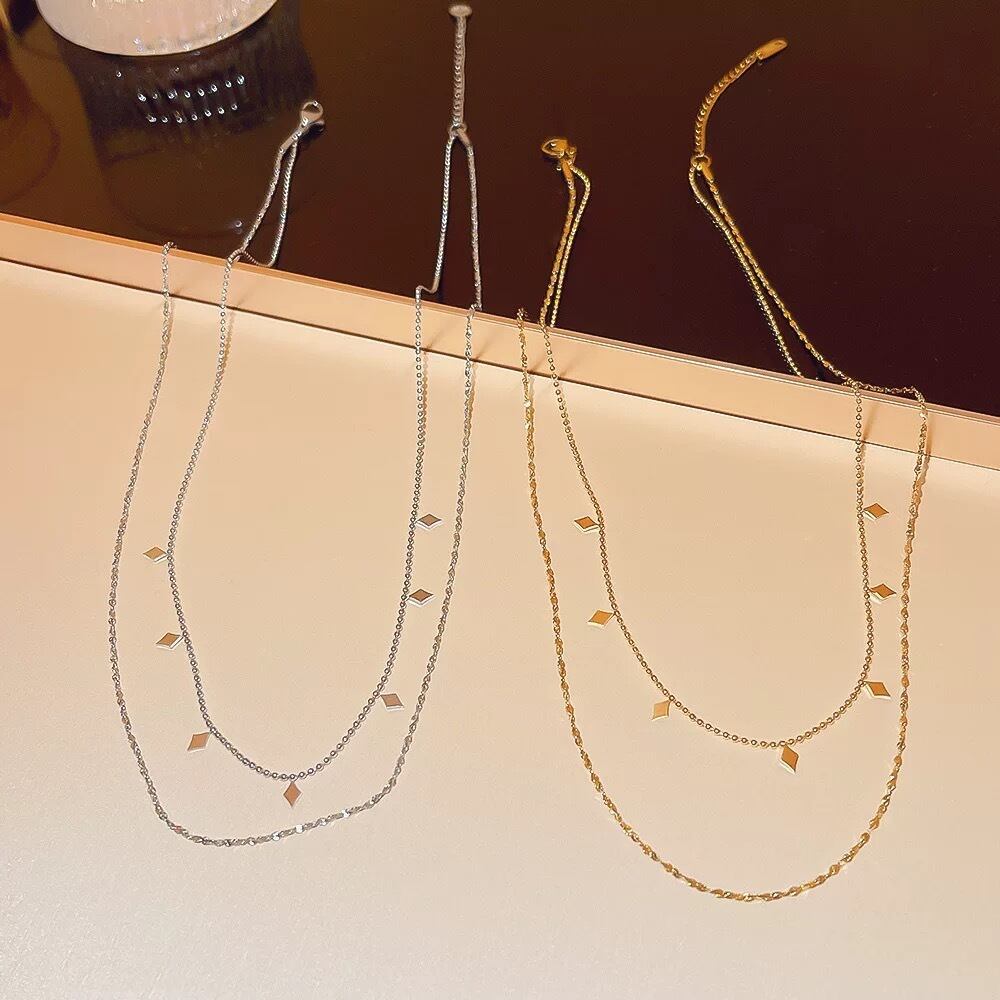 【軽量ステンレス】ダブルチェーン菱形チャームネックレス
