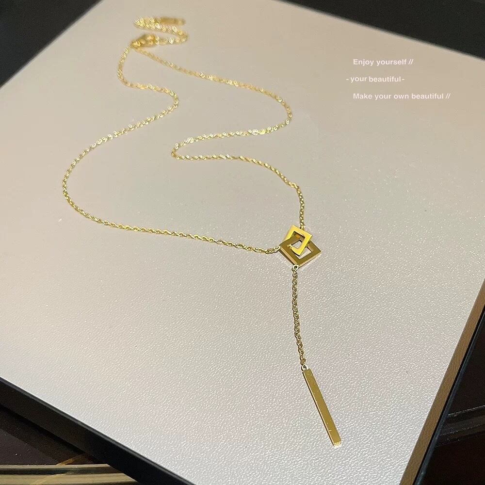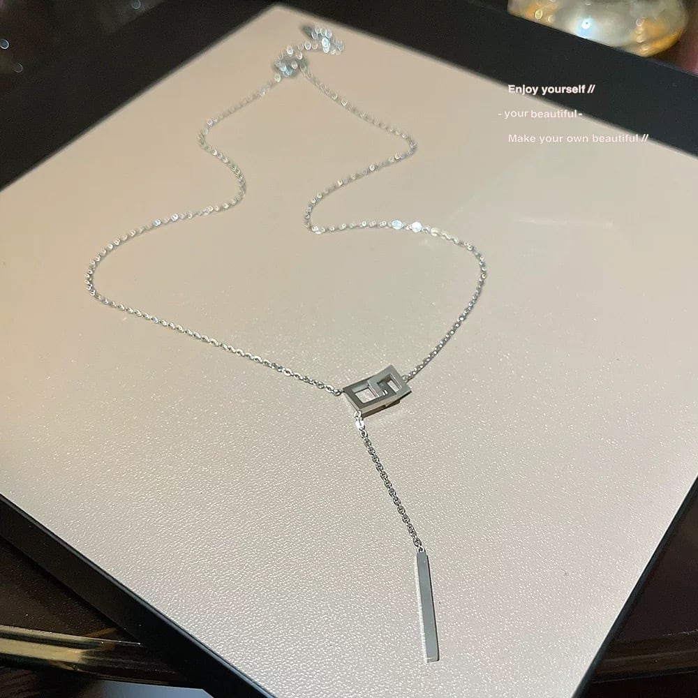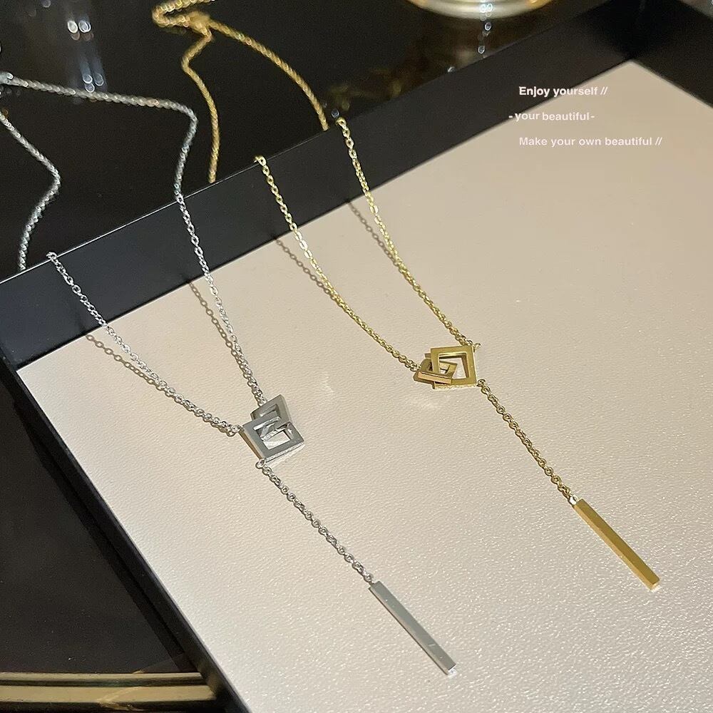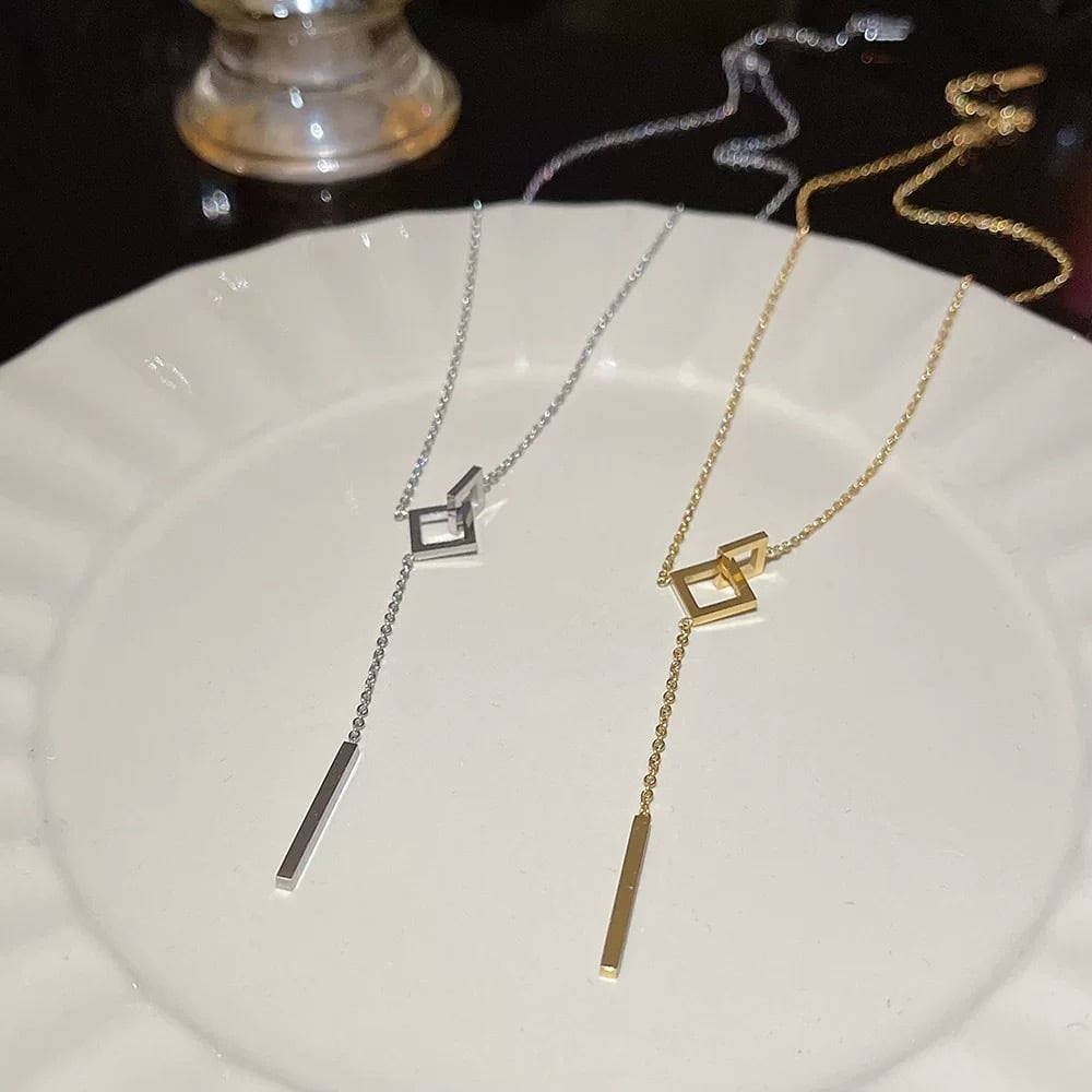 【ステンレス製】スクエアモチーフY字ロングネックレス