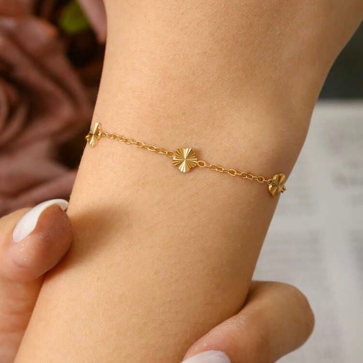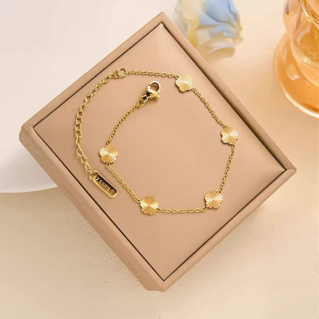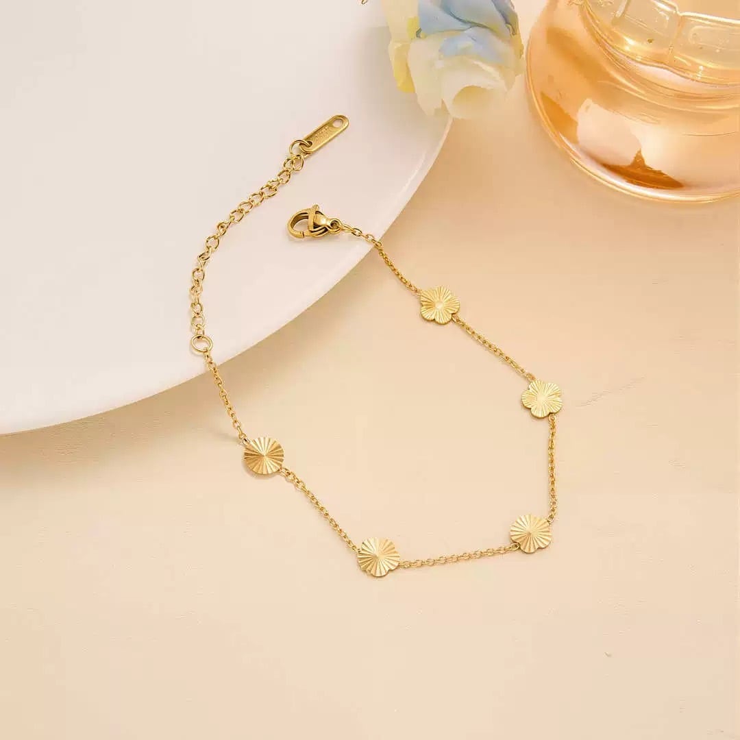 【アジャスター付き】フラワーモチーフチェーンブレスレット(ステンレス)