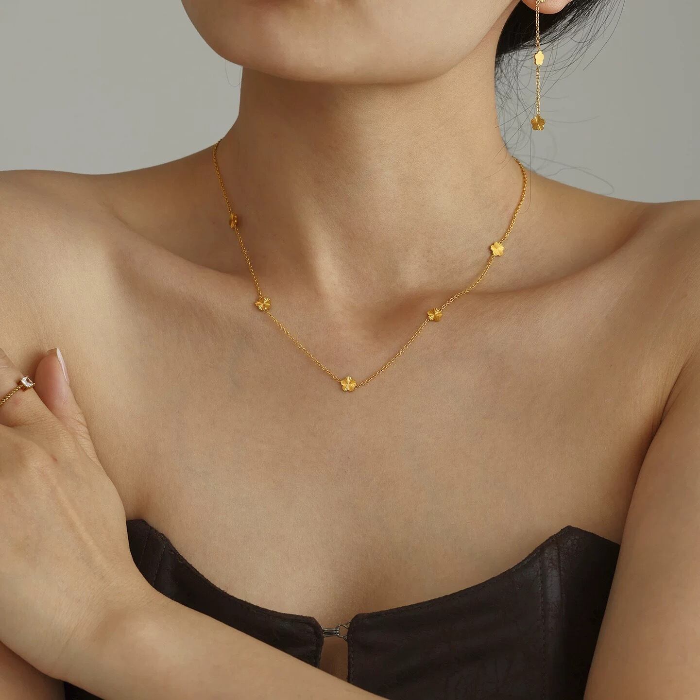 細身のチェーンが手首をすっきり見せ、