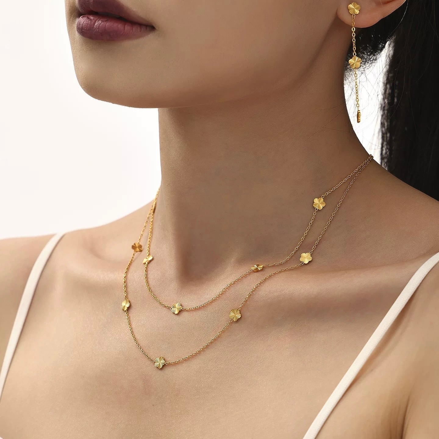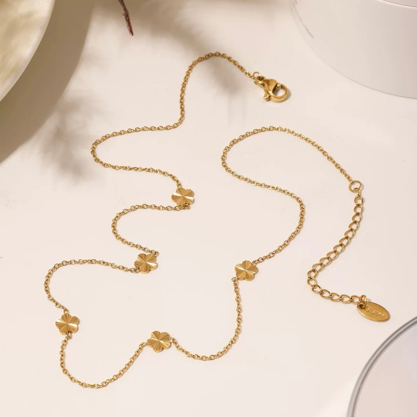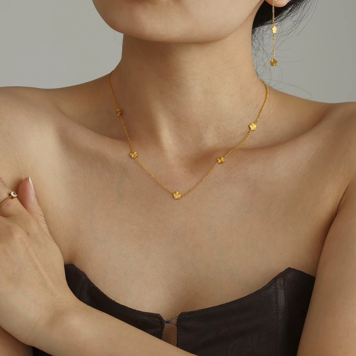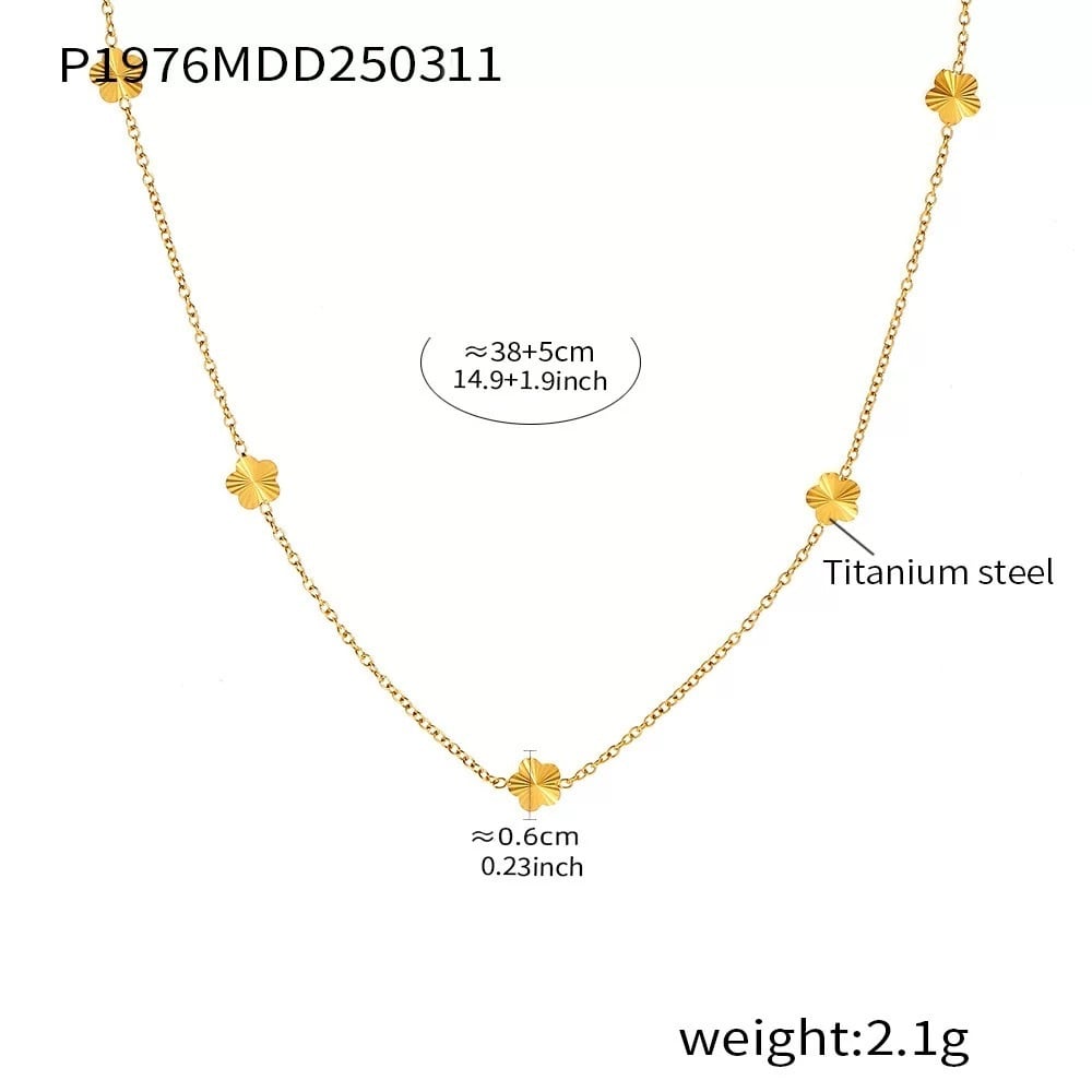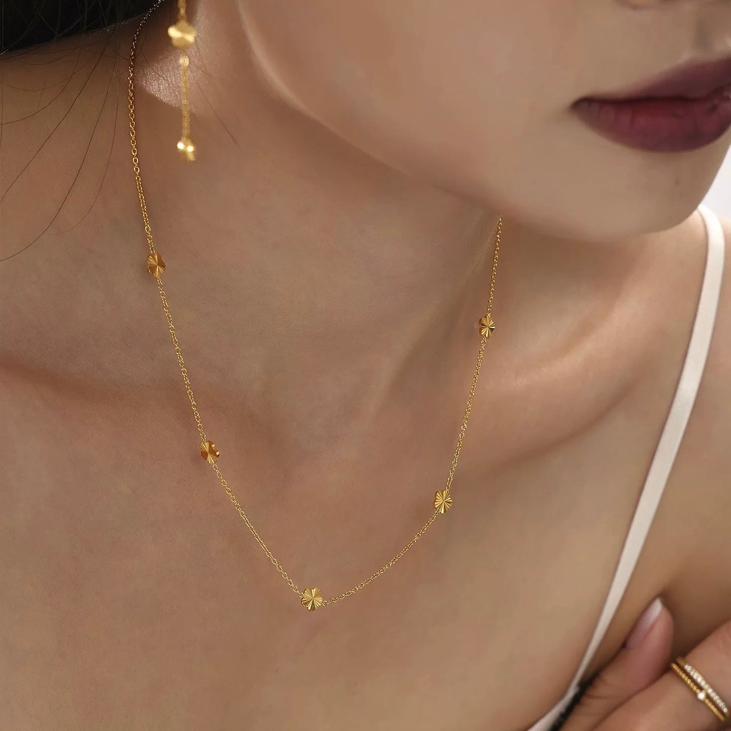 小さなフラワーモチーフを等間隔にあしらった、華奢で上品なチェーンネックレス。