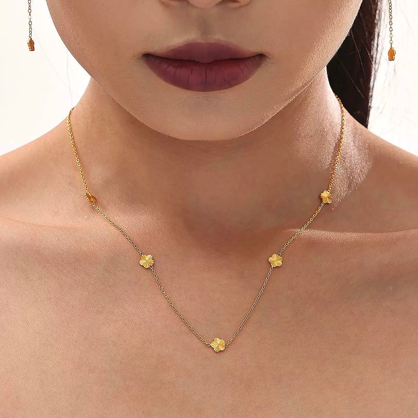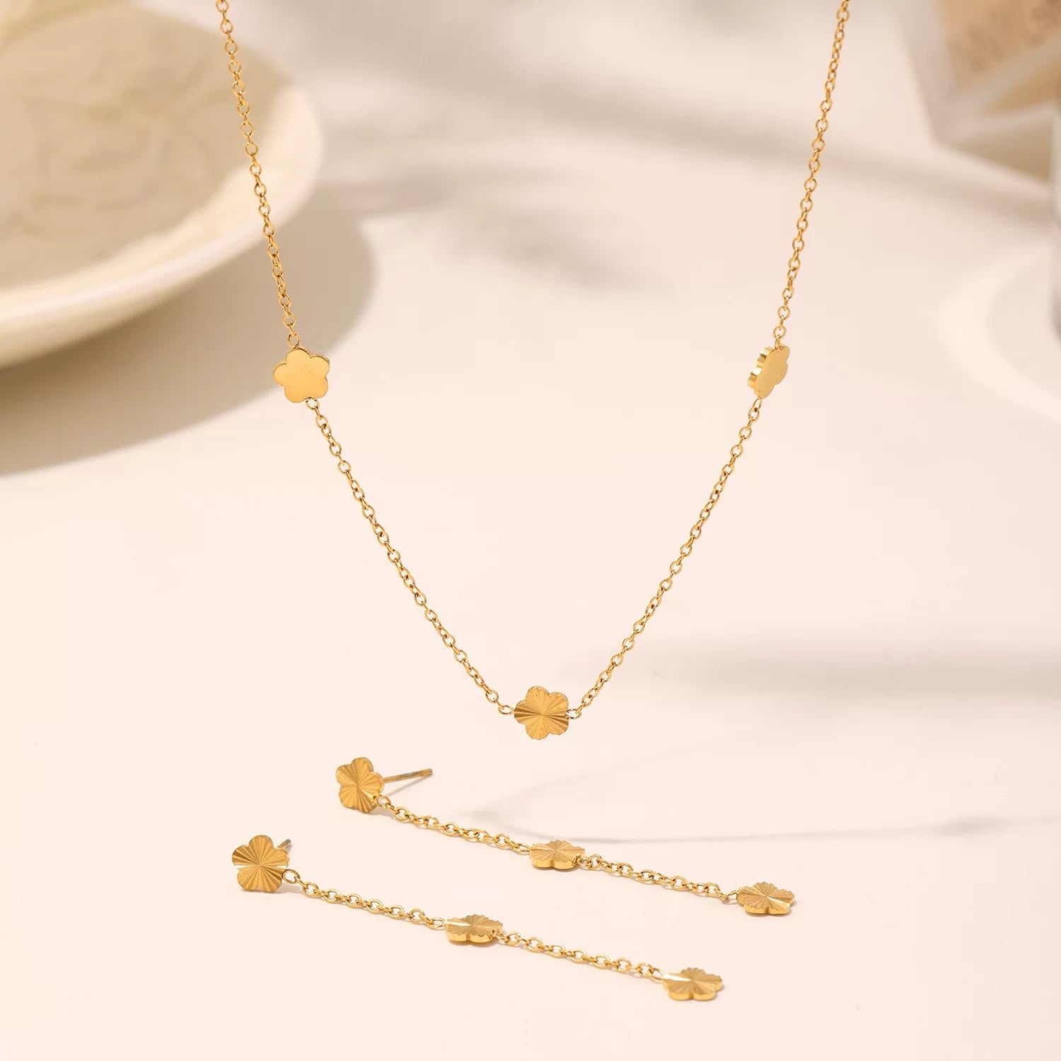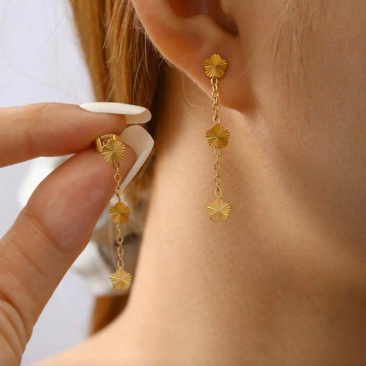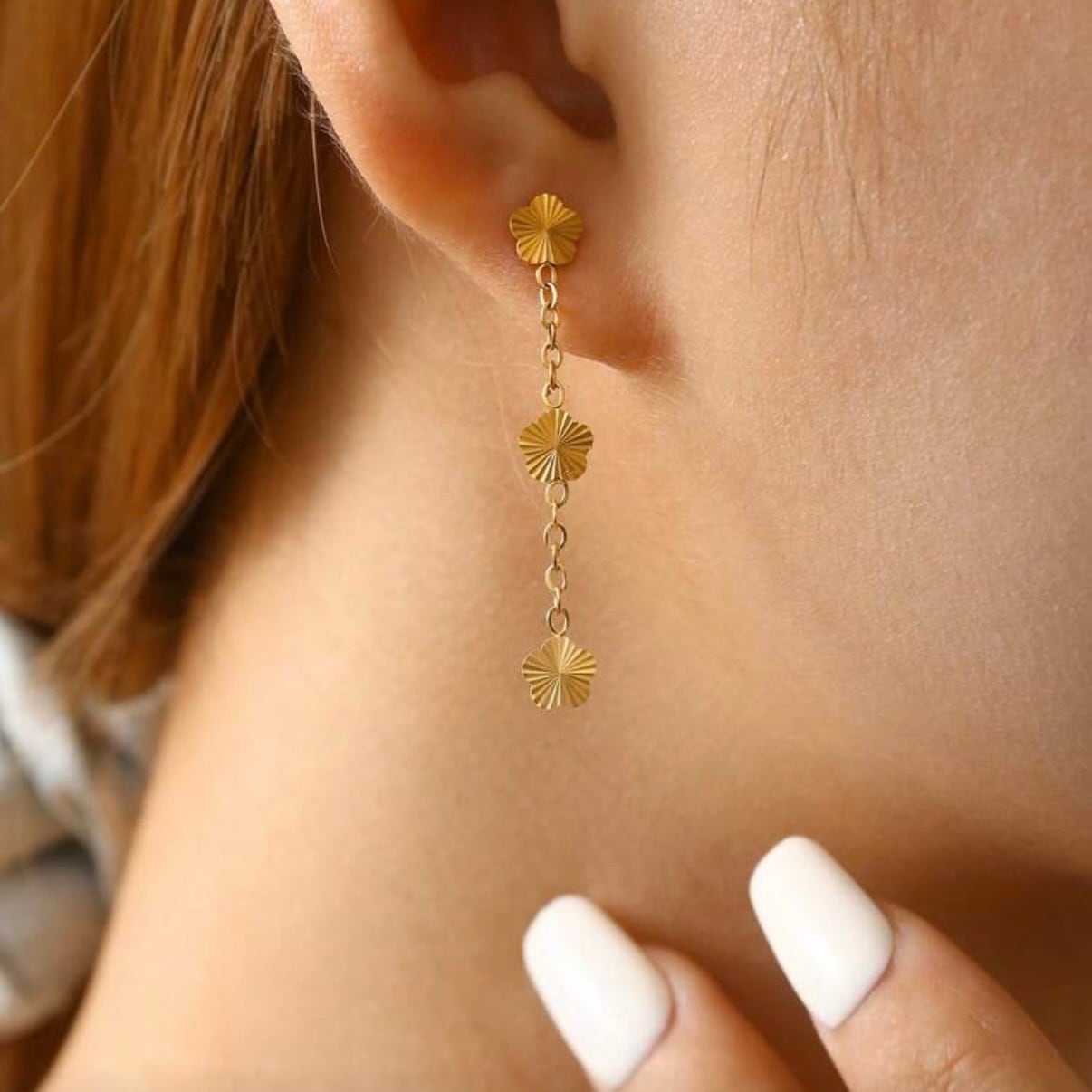繊細なチェーンにフラワーモチーフを連ねたロングピアス。