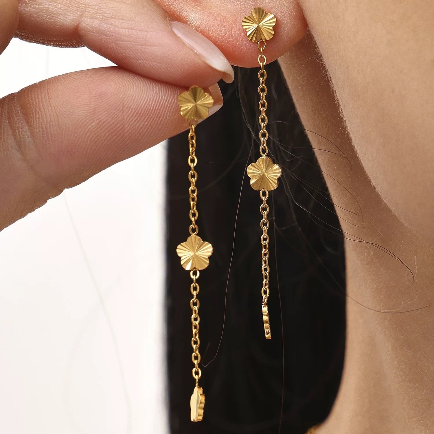 【全長約5.49cm】フラワーチェーンロングピアス(ステンレス)