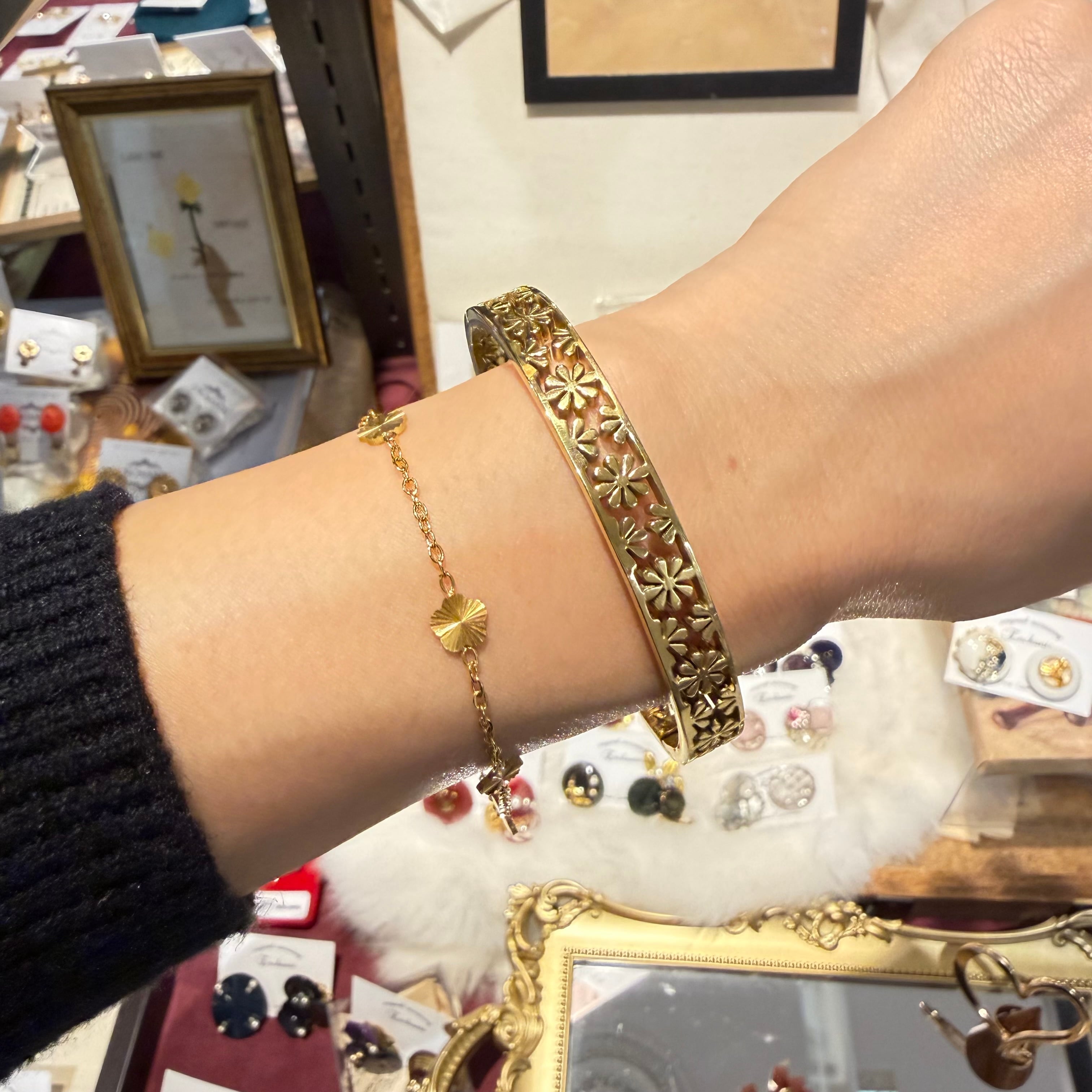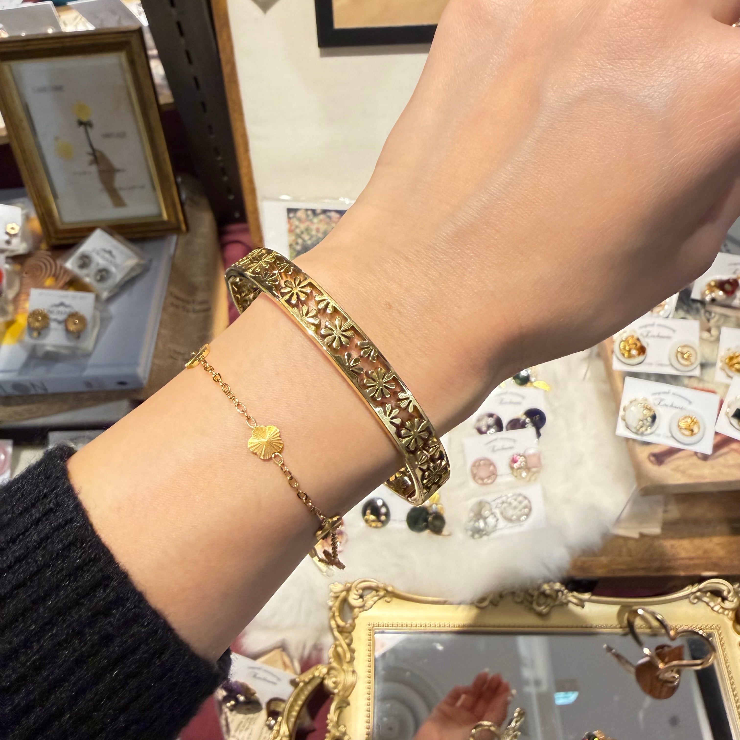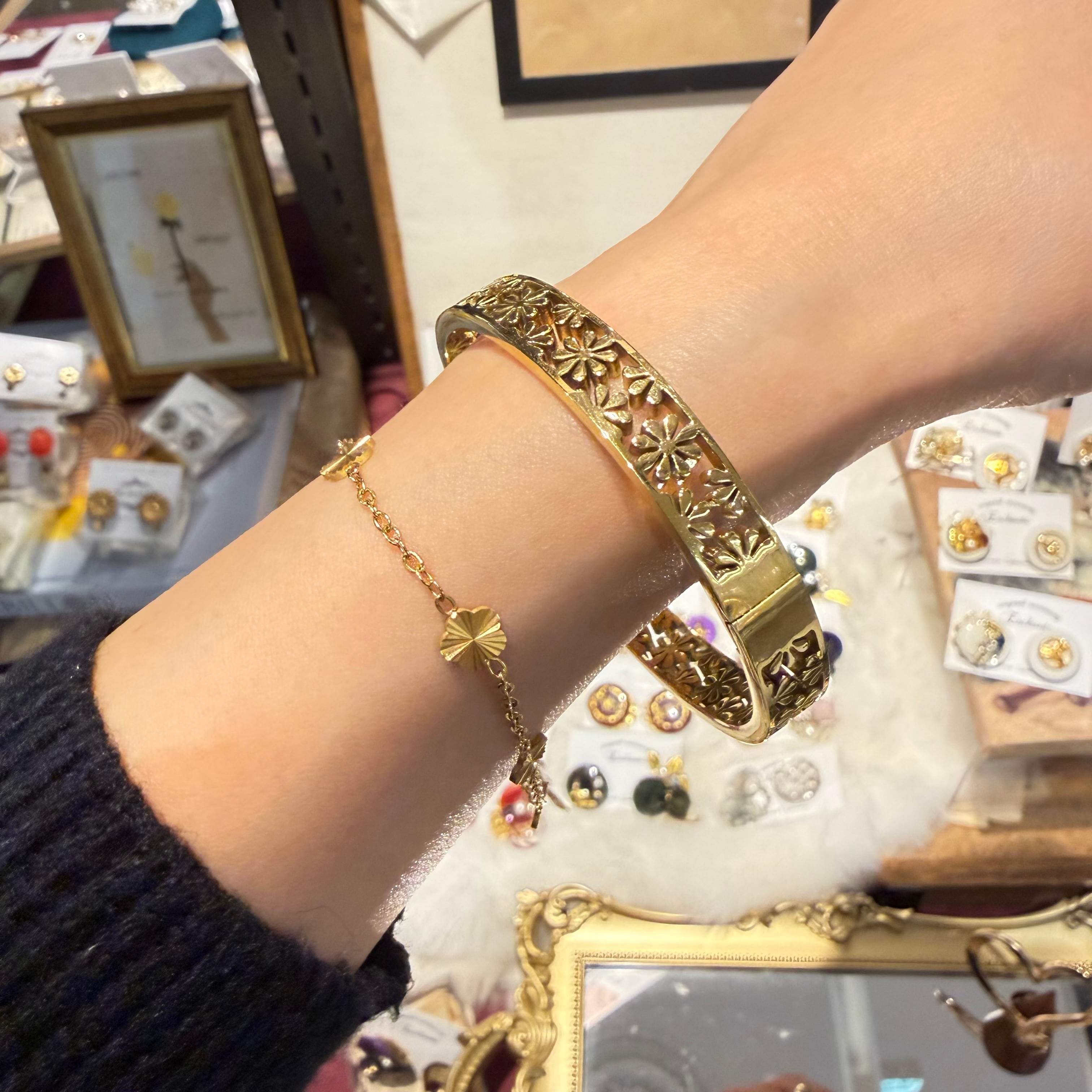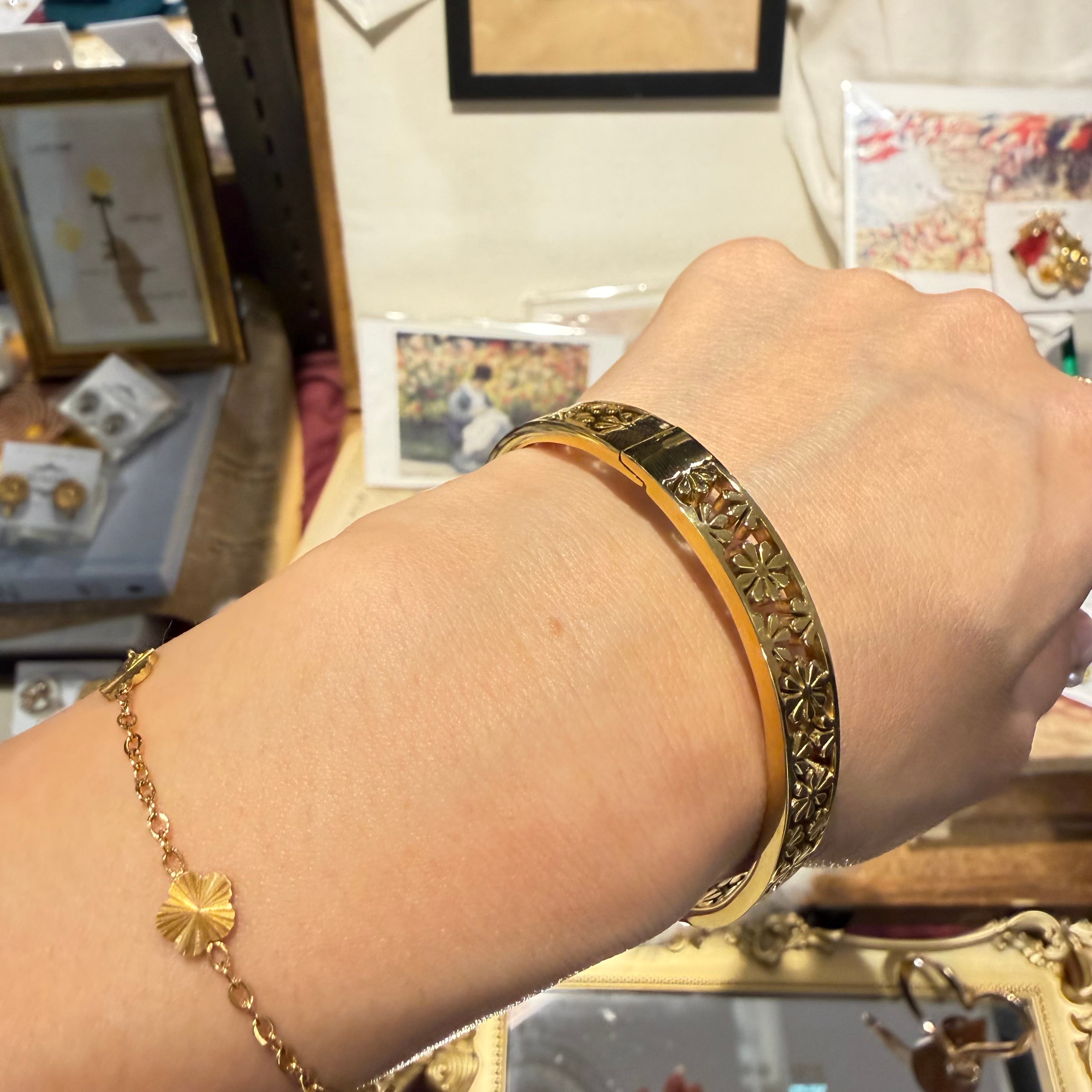 【18金コーティング】フラワーカットワークゴールドバングル(6×5cm)