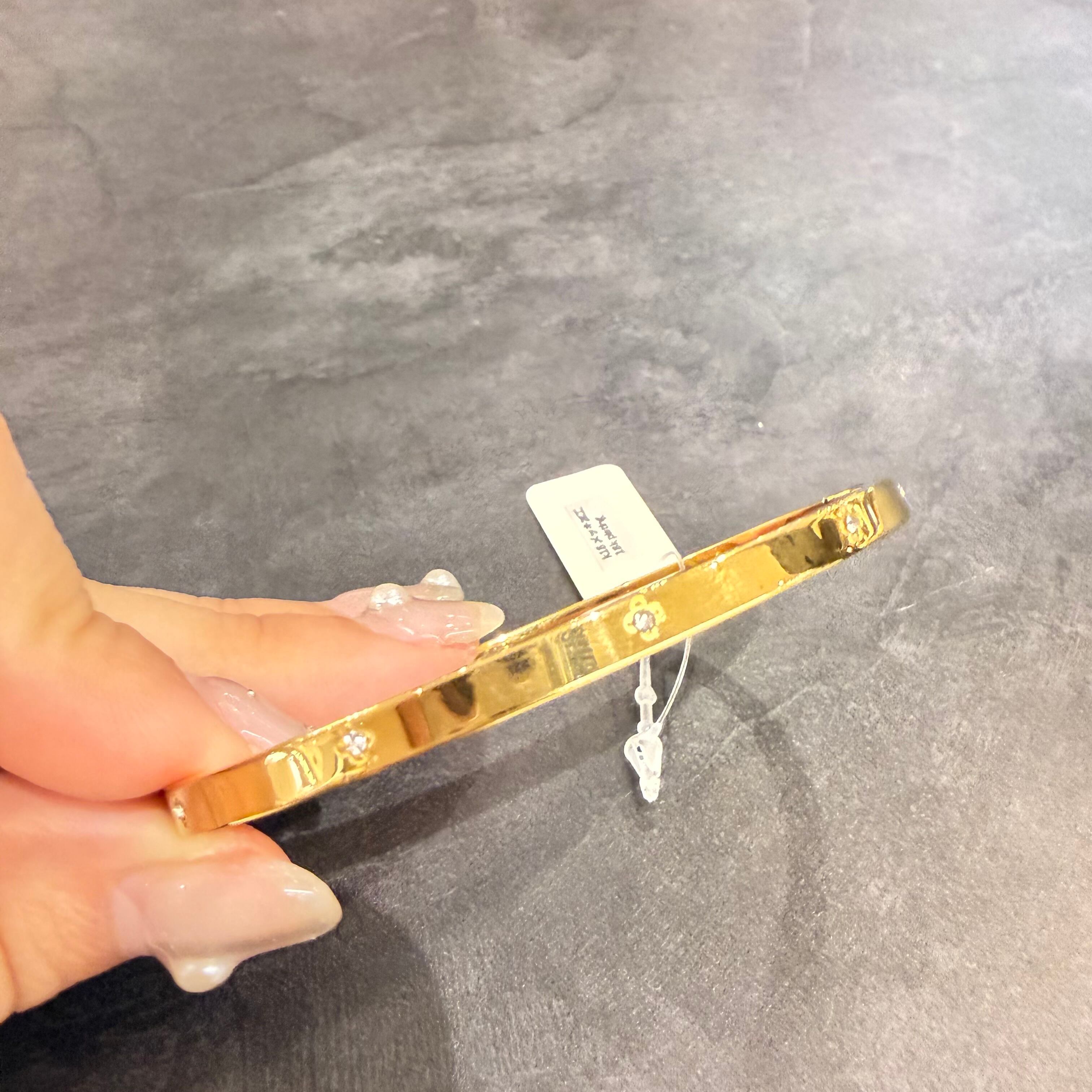【18金コーティング】四つ葉モチーフラインストーンゴールドバングル(6×5cm)
