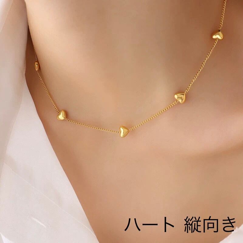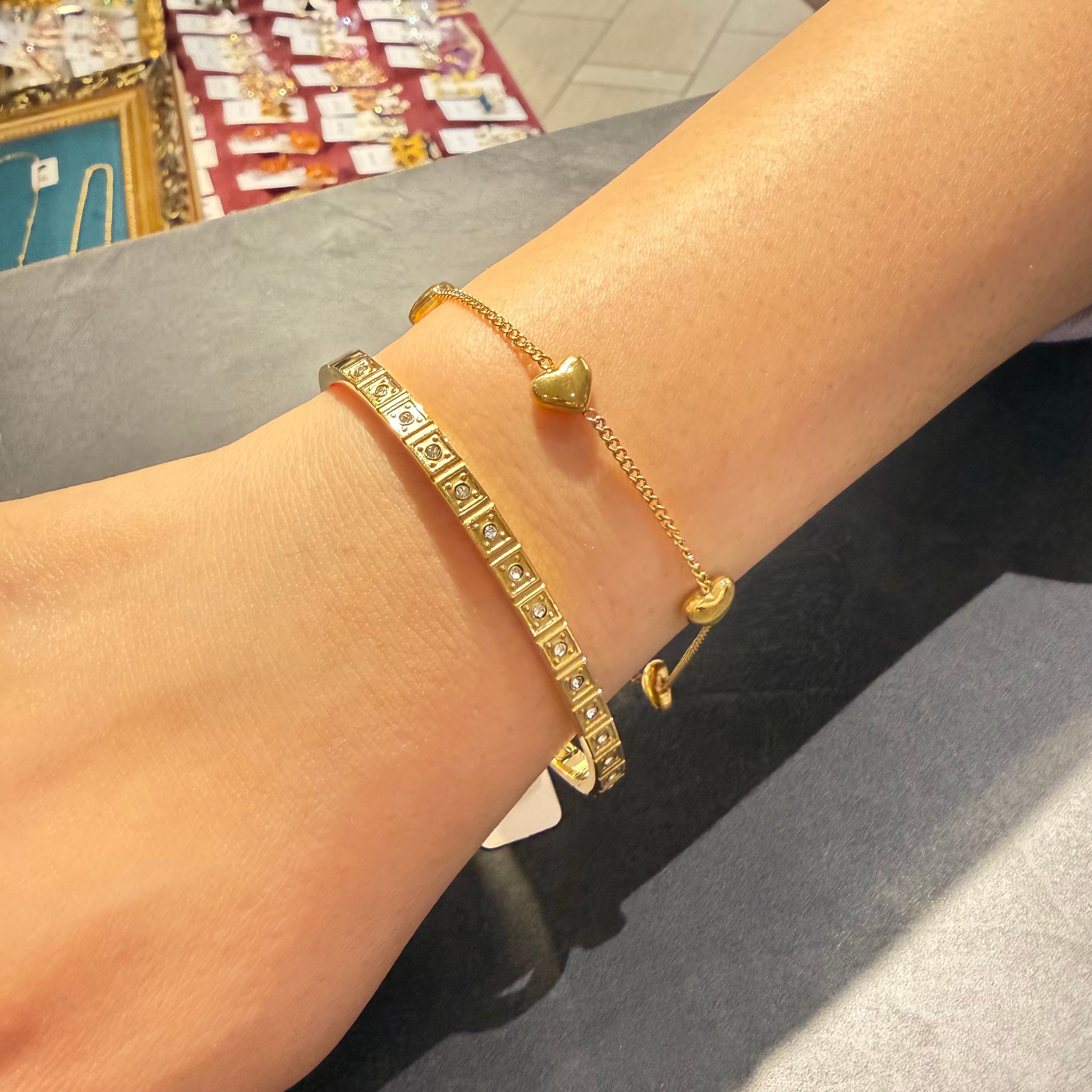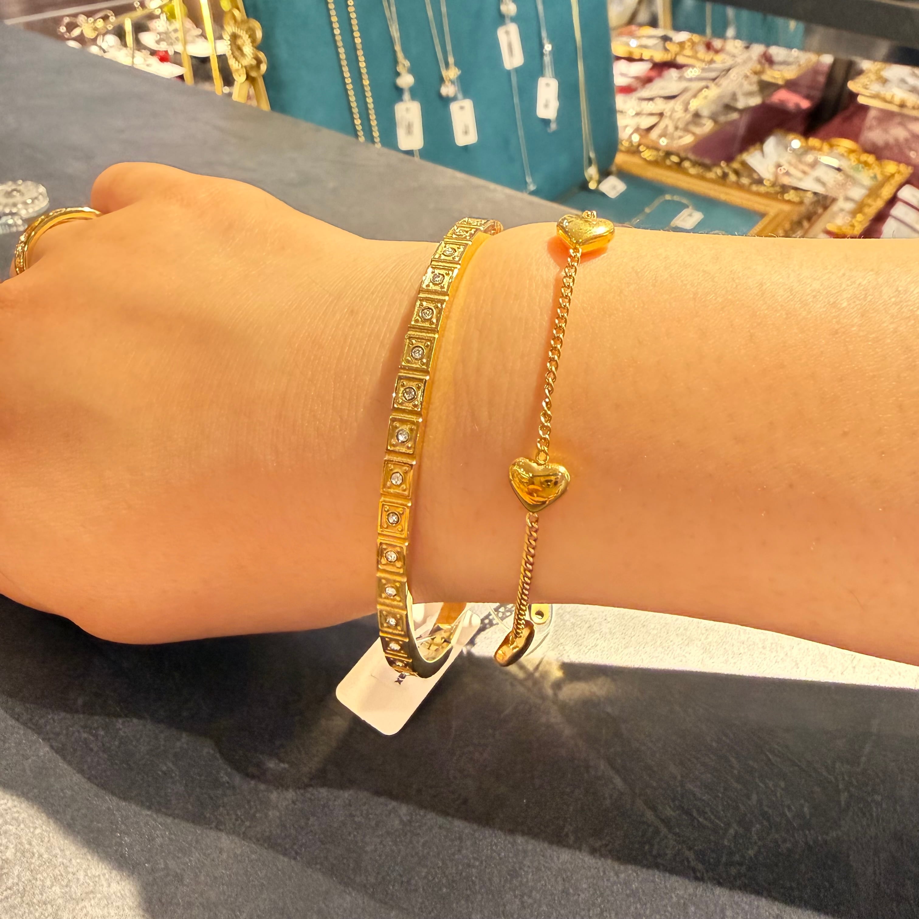 立体ハートが連なる、華奢なゴールドブレスレット。