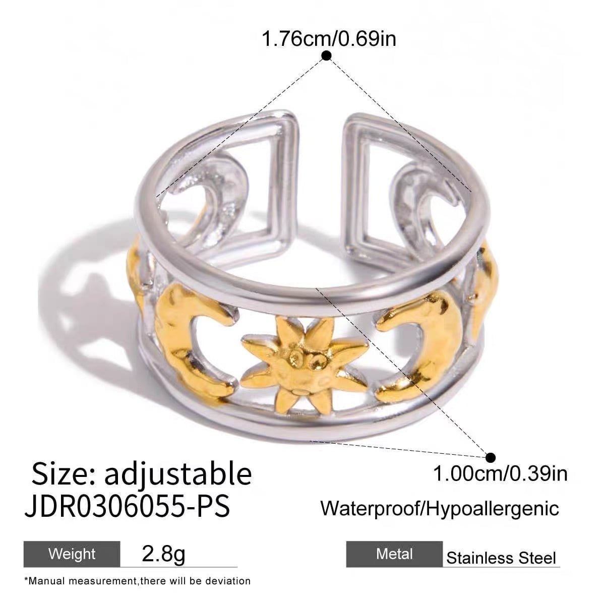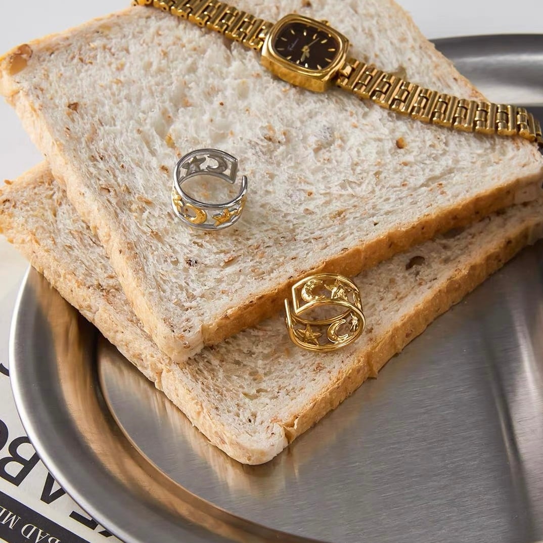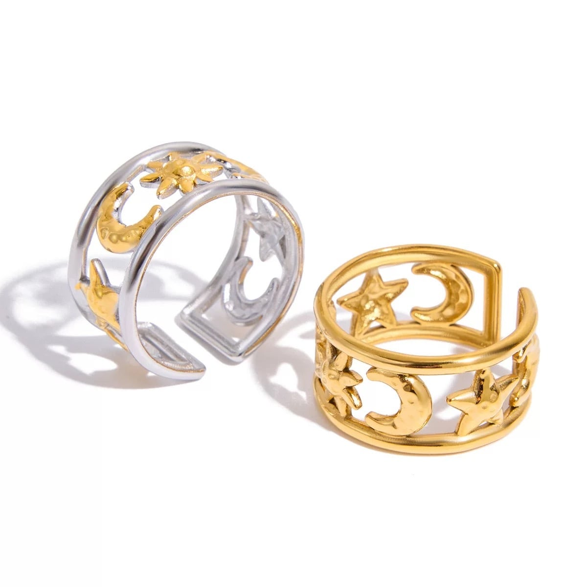 【フリーサイズ】サン&ムーン モチーフ ワイドリング(ゴールド/シルバー)