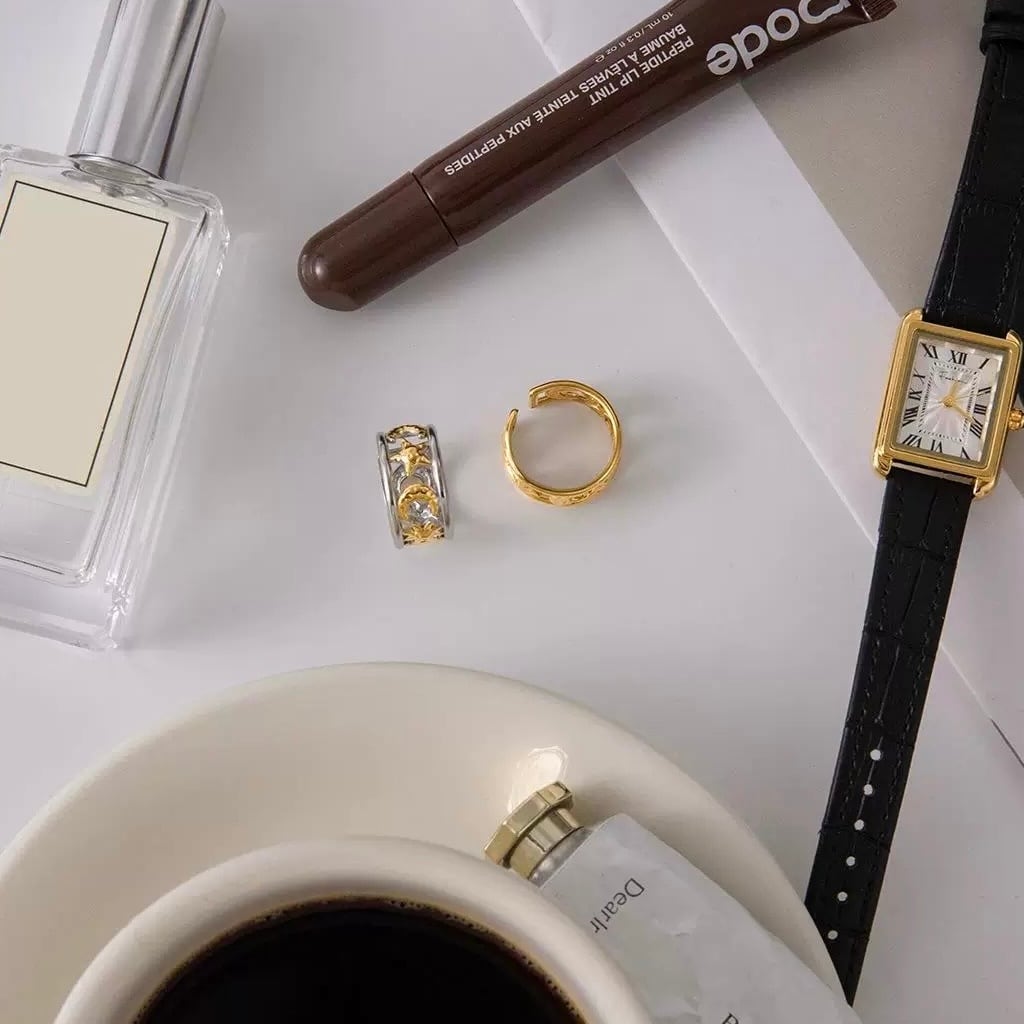 バイカラーデザイン(シルバー×ゴールド)は、モード感のある洗練された雰囲気に仕上がっています。
