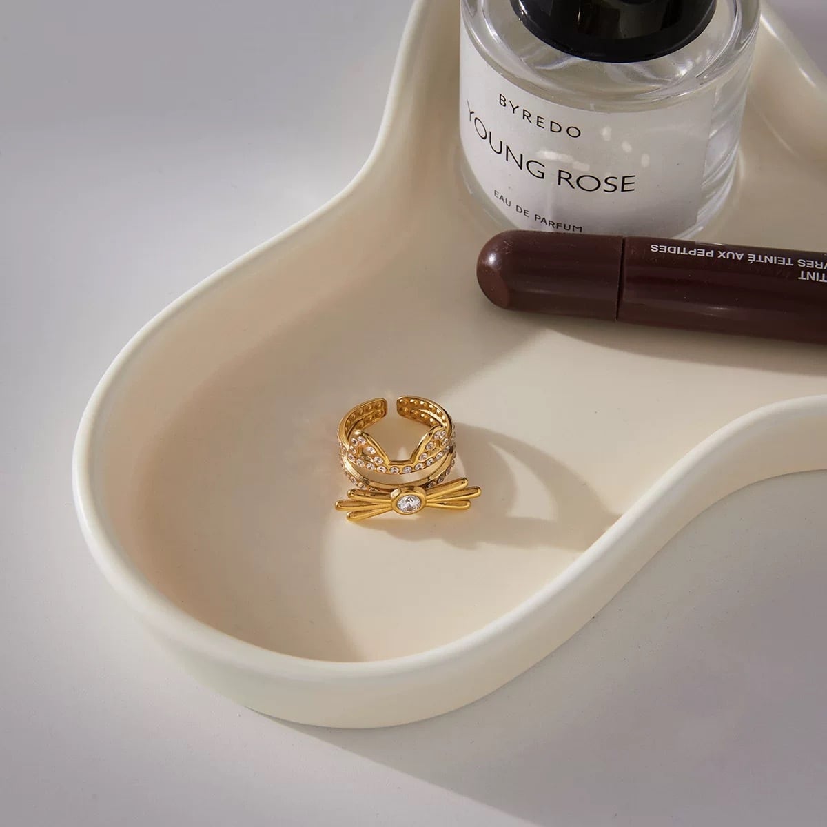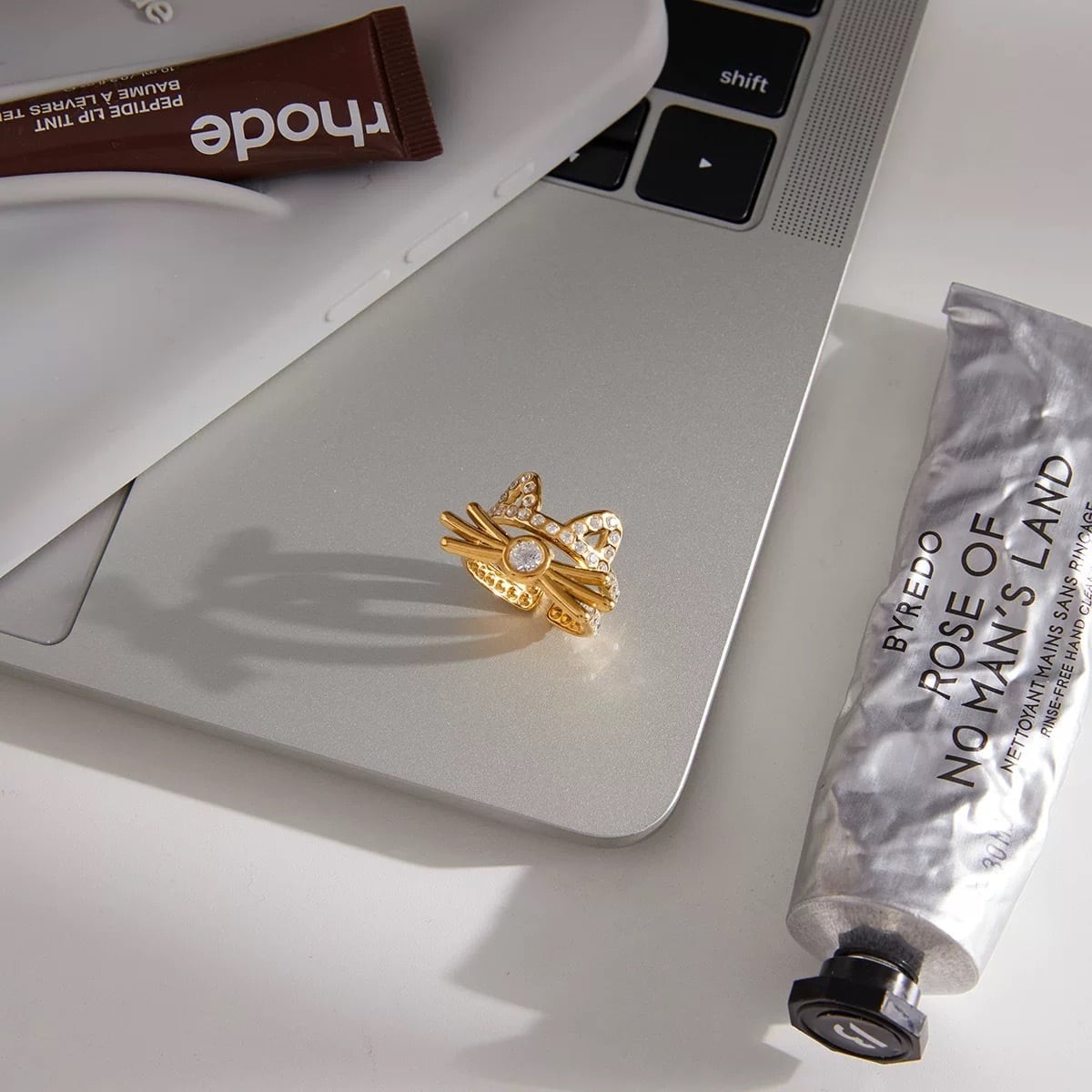 【フリーサイズ】キャットモチーフ ゴールドリング|ステンレス製・アレルギー対応