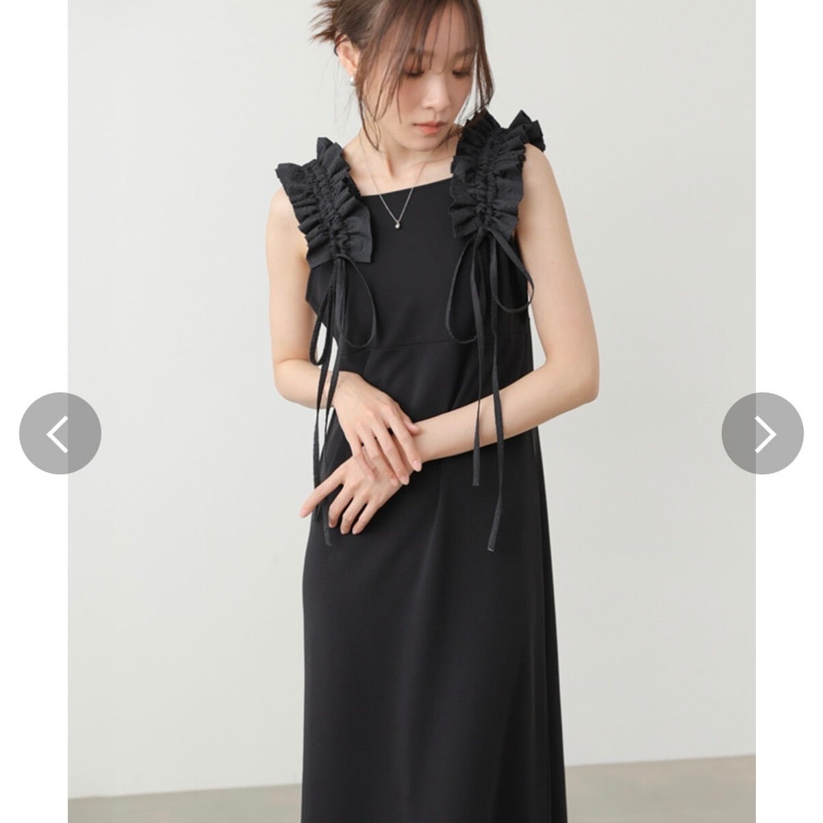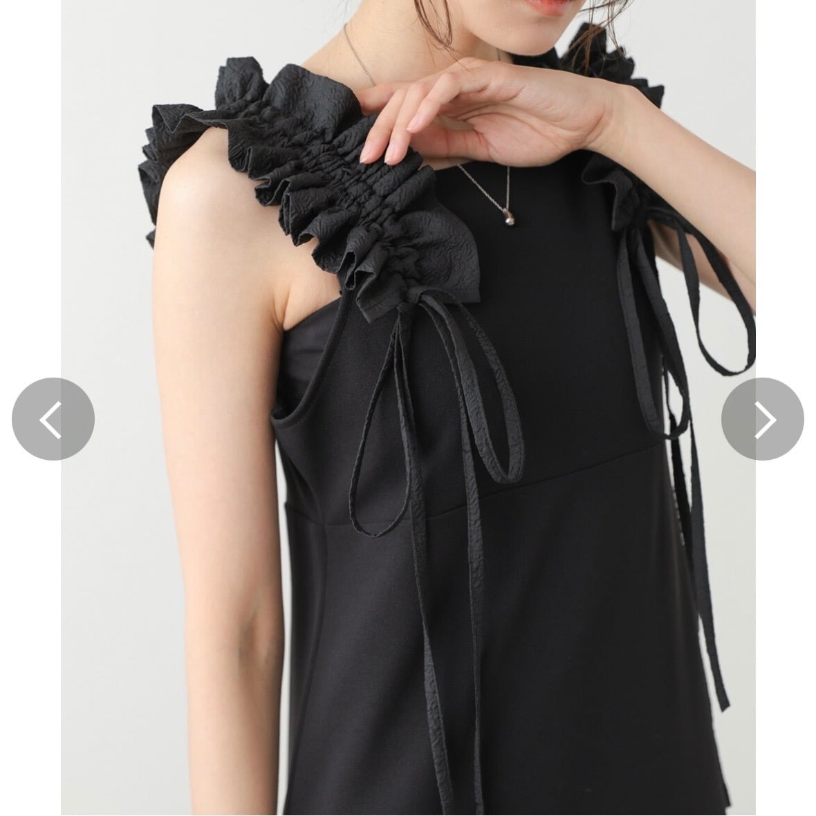 【S〜L対応】フリルショルダーイージージョーゼットキャミワンピース(BLACK)
