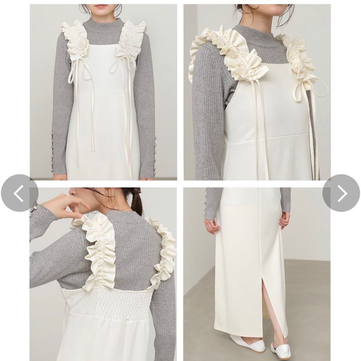肩のフリルが顔周りを華やかに見せてくれるので、
