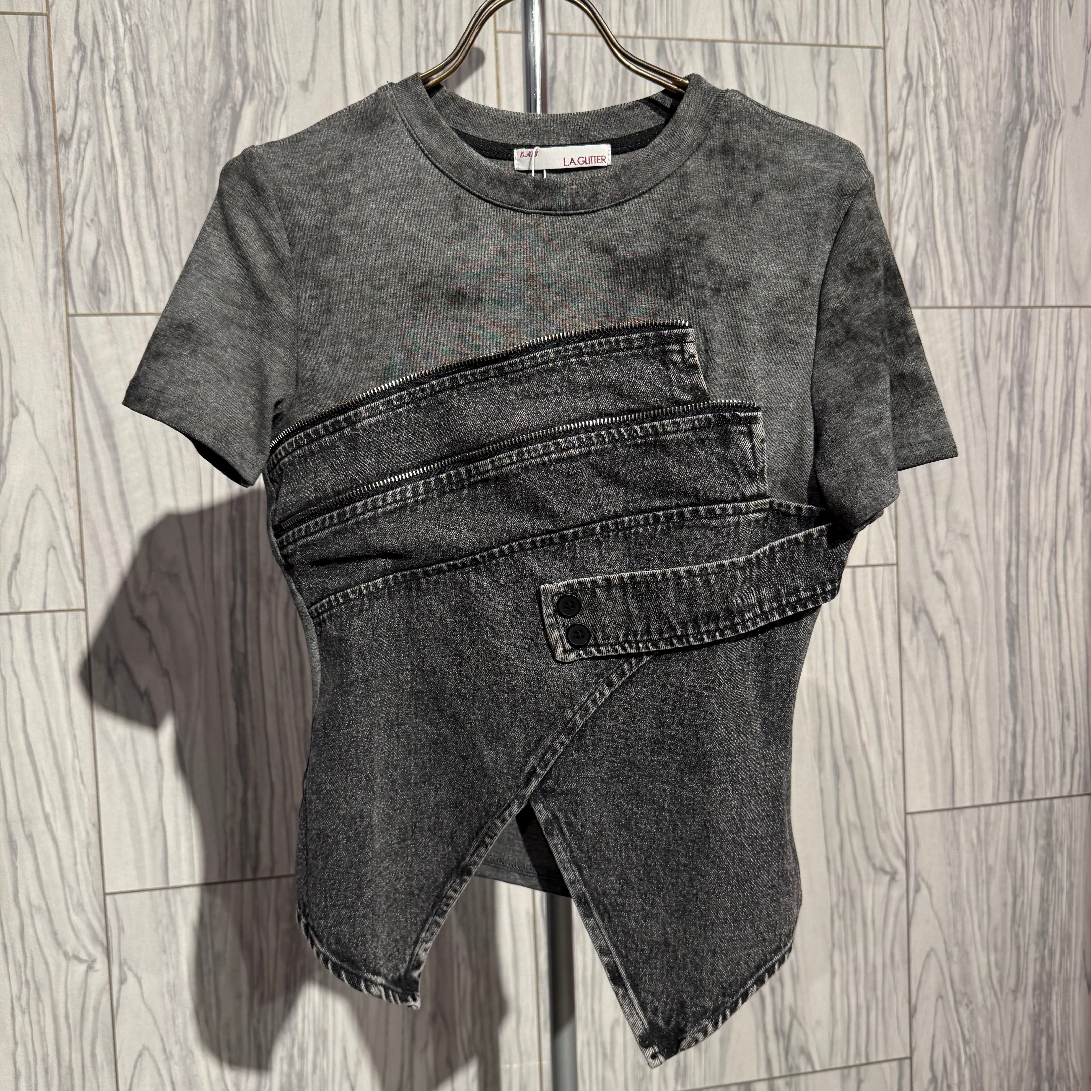 異素材ミックスで魅せる、存在感抜群のデザインTシャツ。