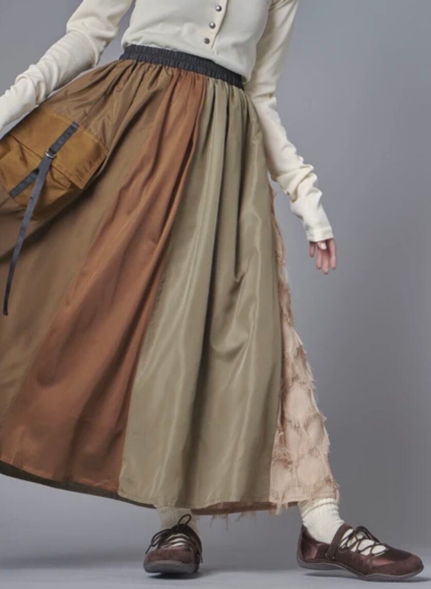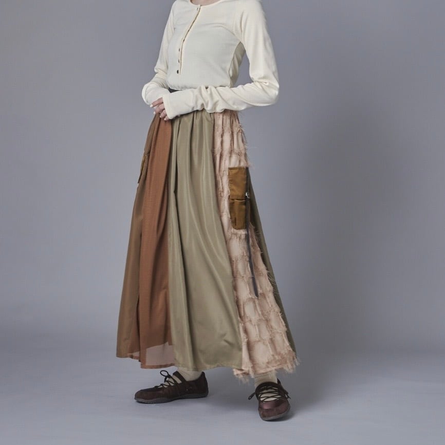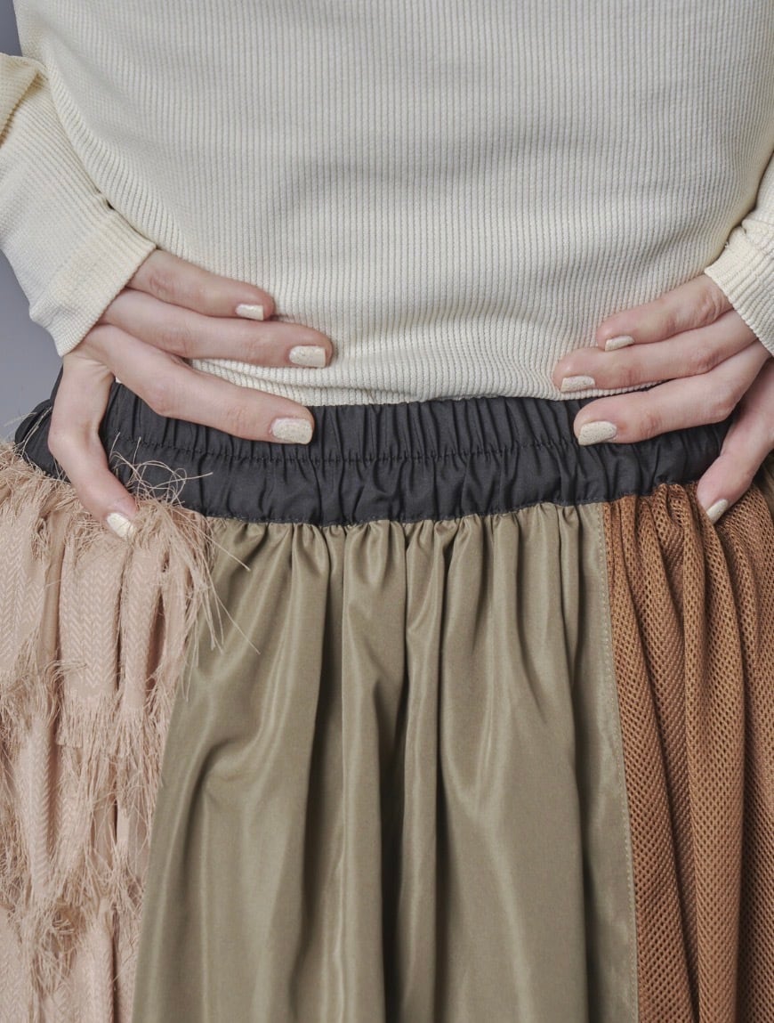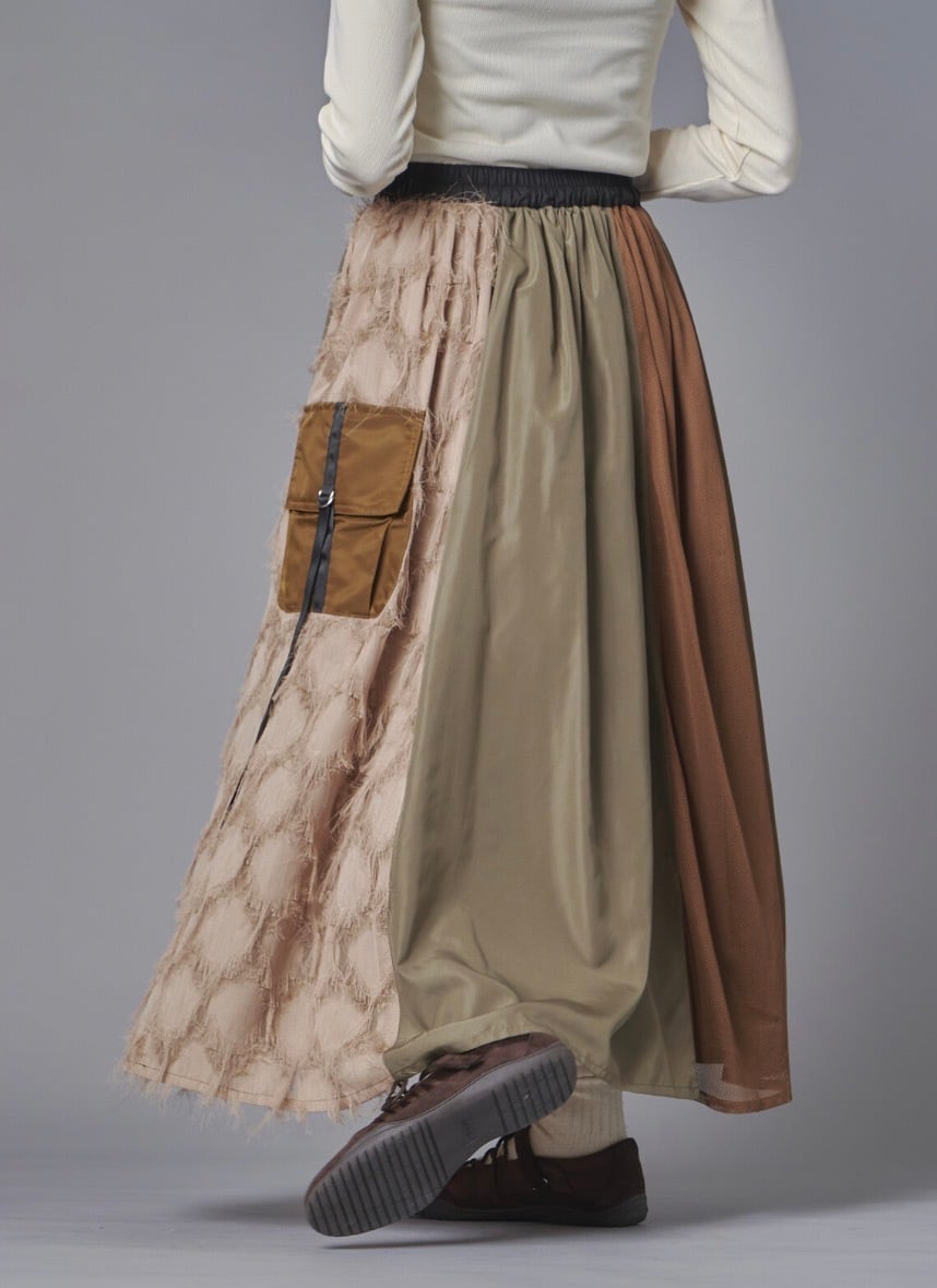 【FREEサイズ】異素材ミックス バリアスパターンフレアスカート