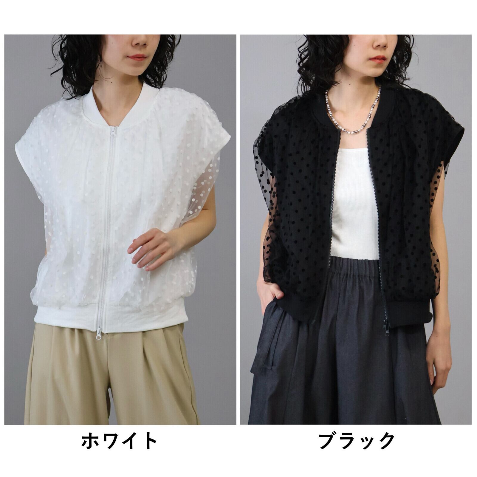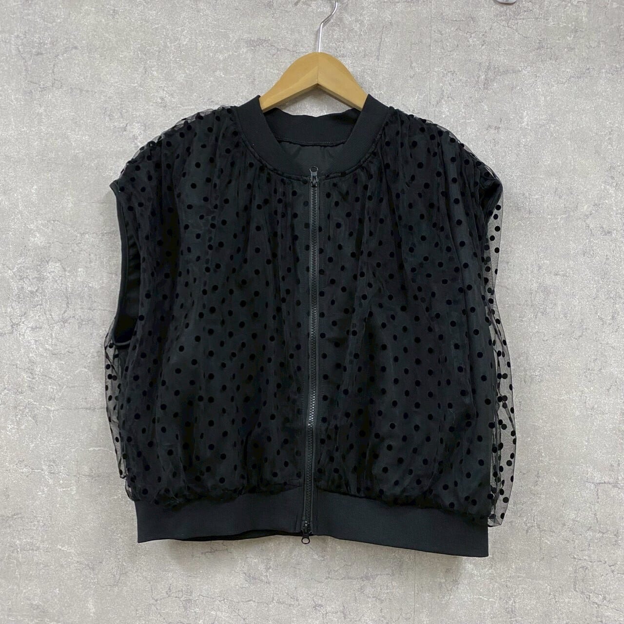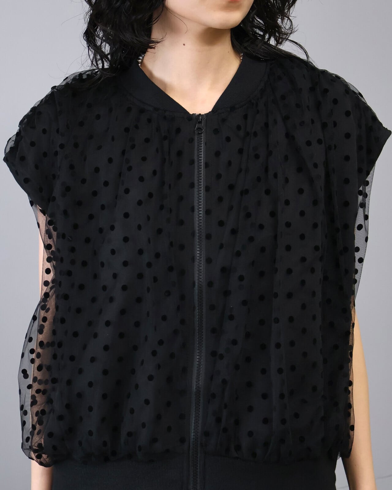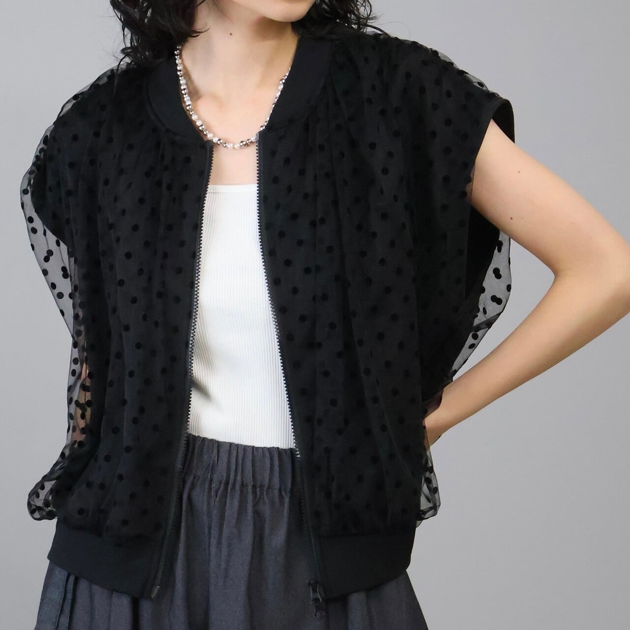 【M〜L対応】ドットシアーZIPブルゾン(ブラック)