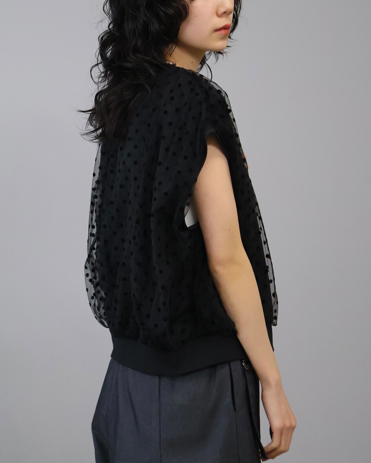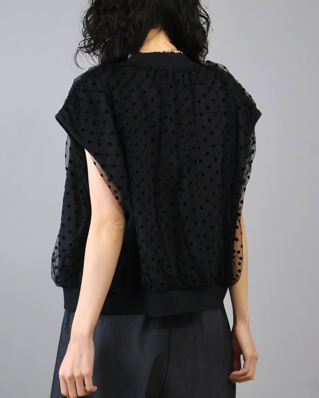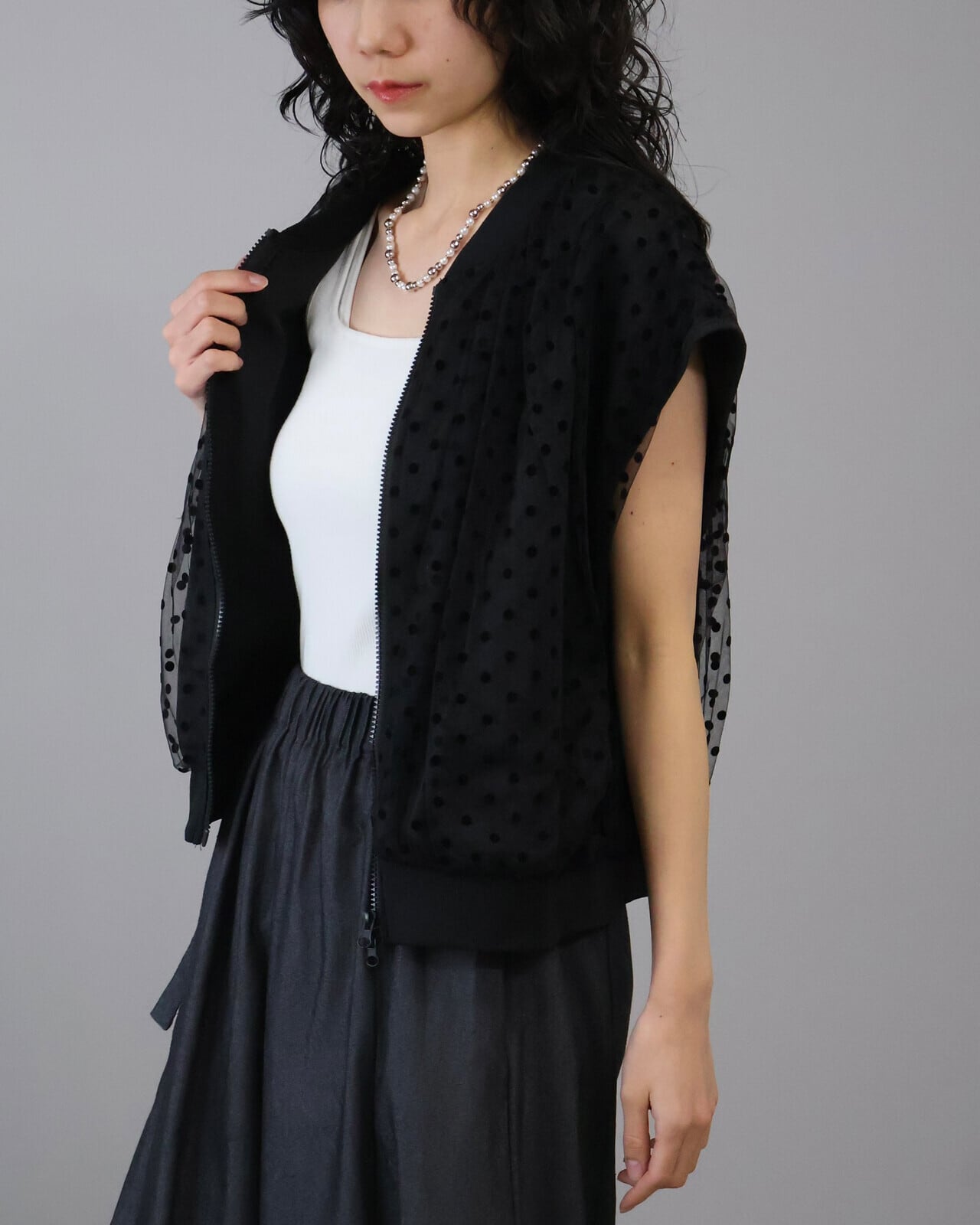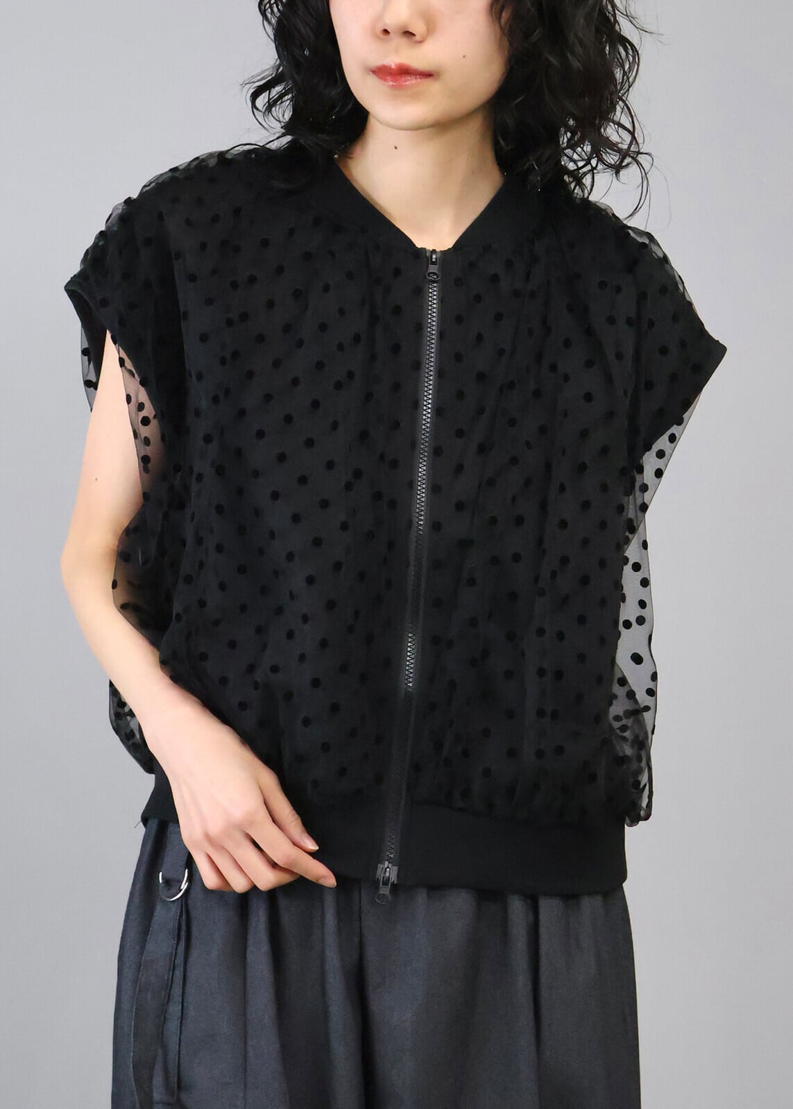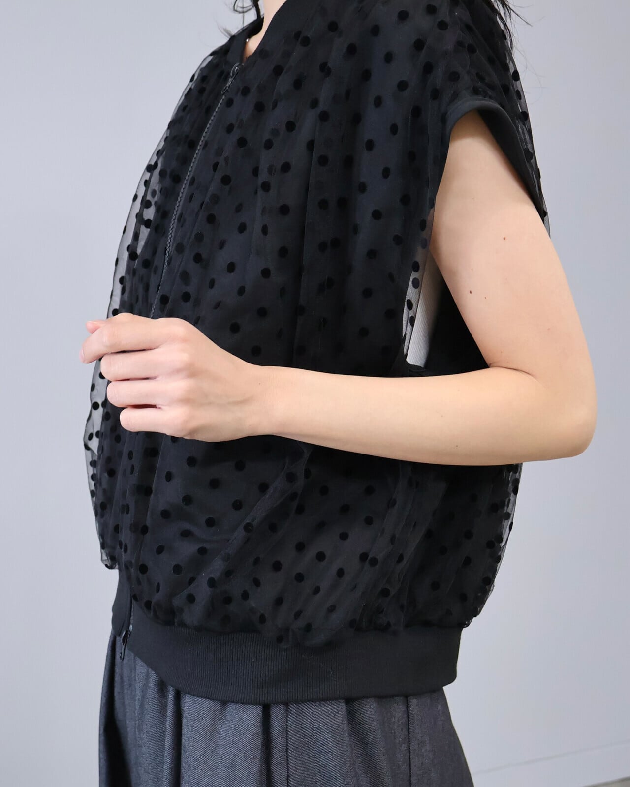 【M〜L対応】ドットシアーZIPブルゾン(ブラック)