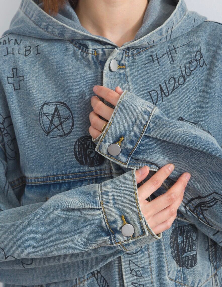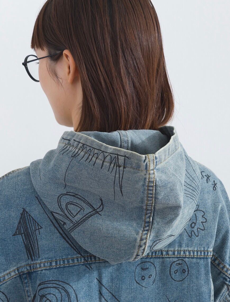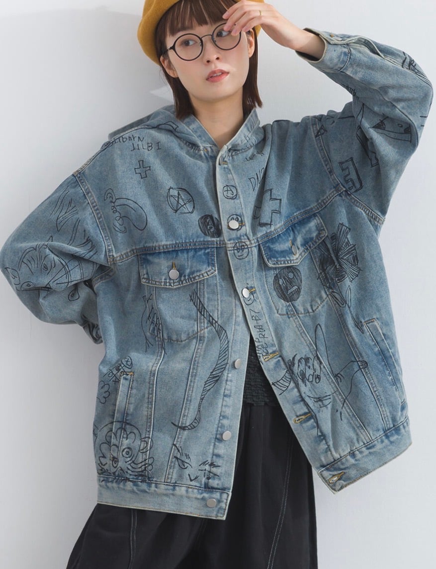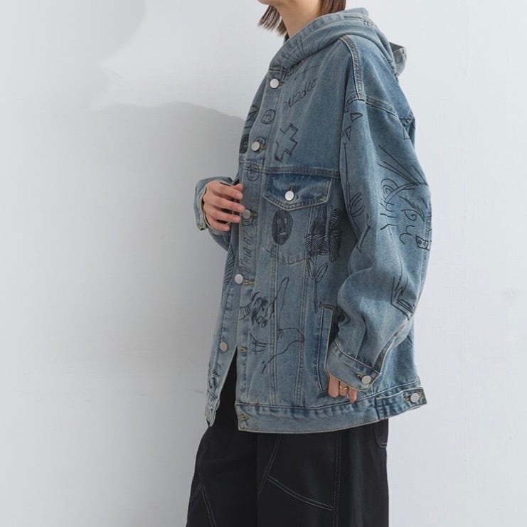 【M〜L対応】アートペイントデニムフードジャケット
