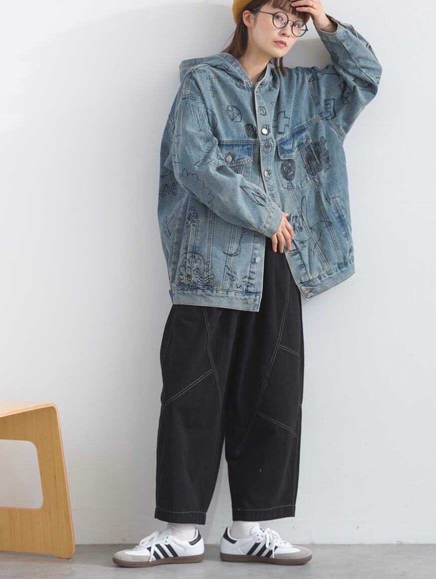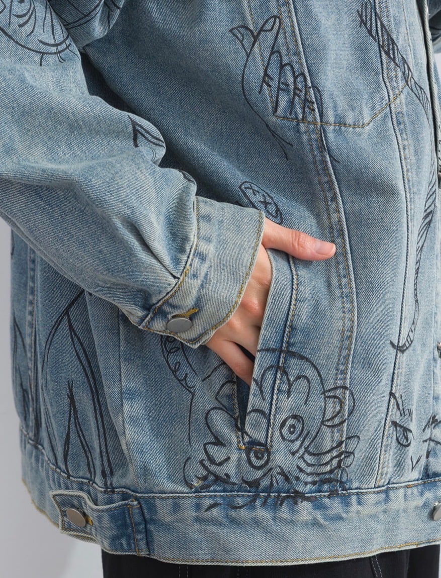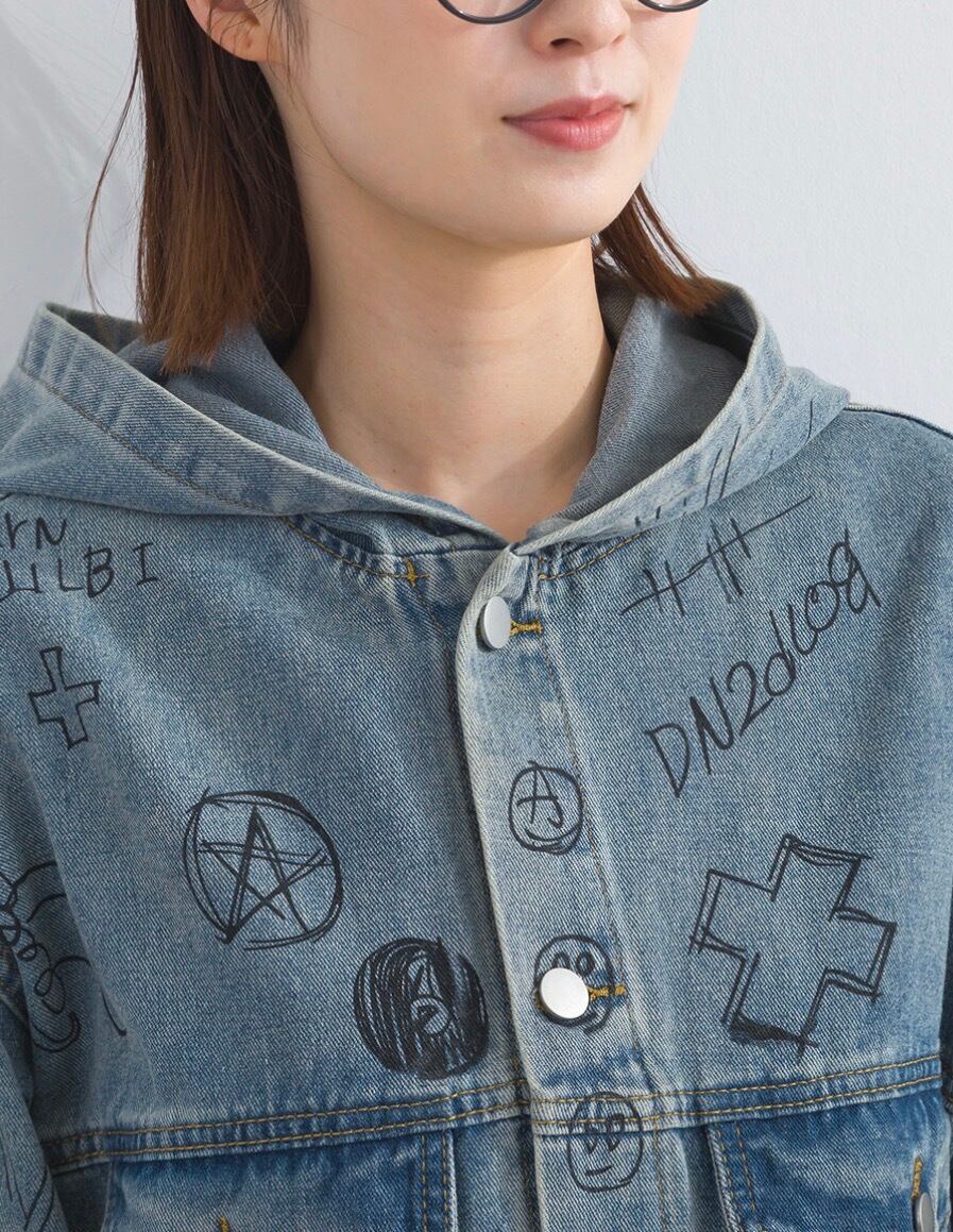 【M〜L対応】アートペイントデニムフードジャケット